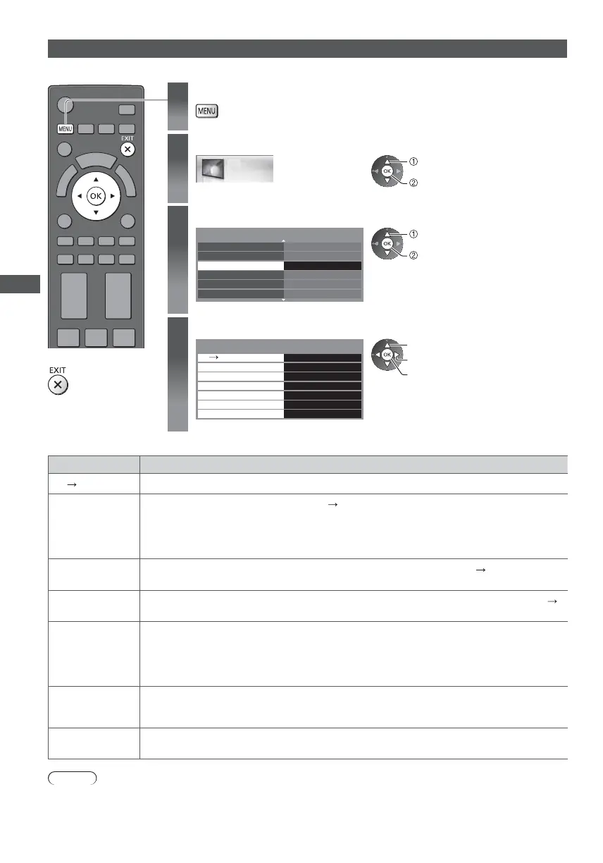 [3D Adjustment] and [Picture Sequence] will not be memorised when changing the input mode or channel.