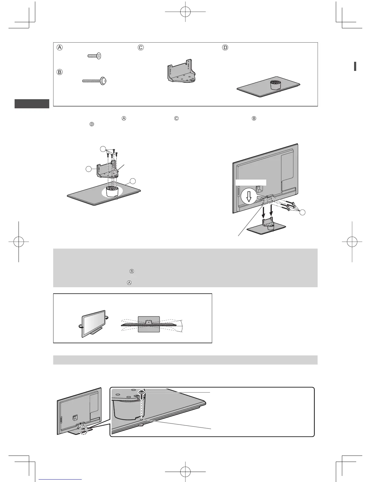 Using the fall-prevent screw hole and a screw (commercially available), securely fix the body of the pedestal to the