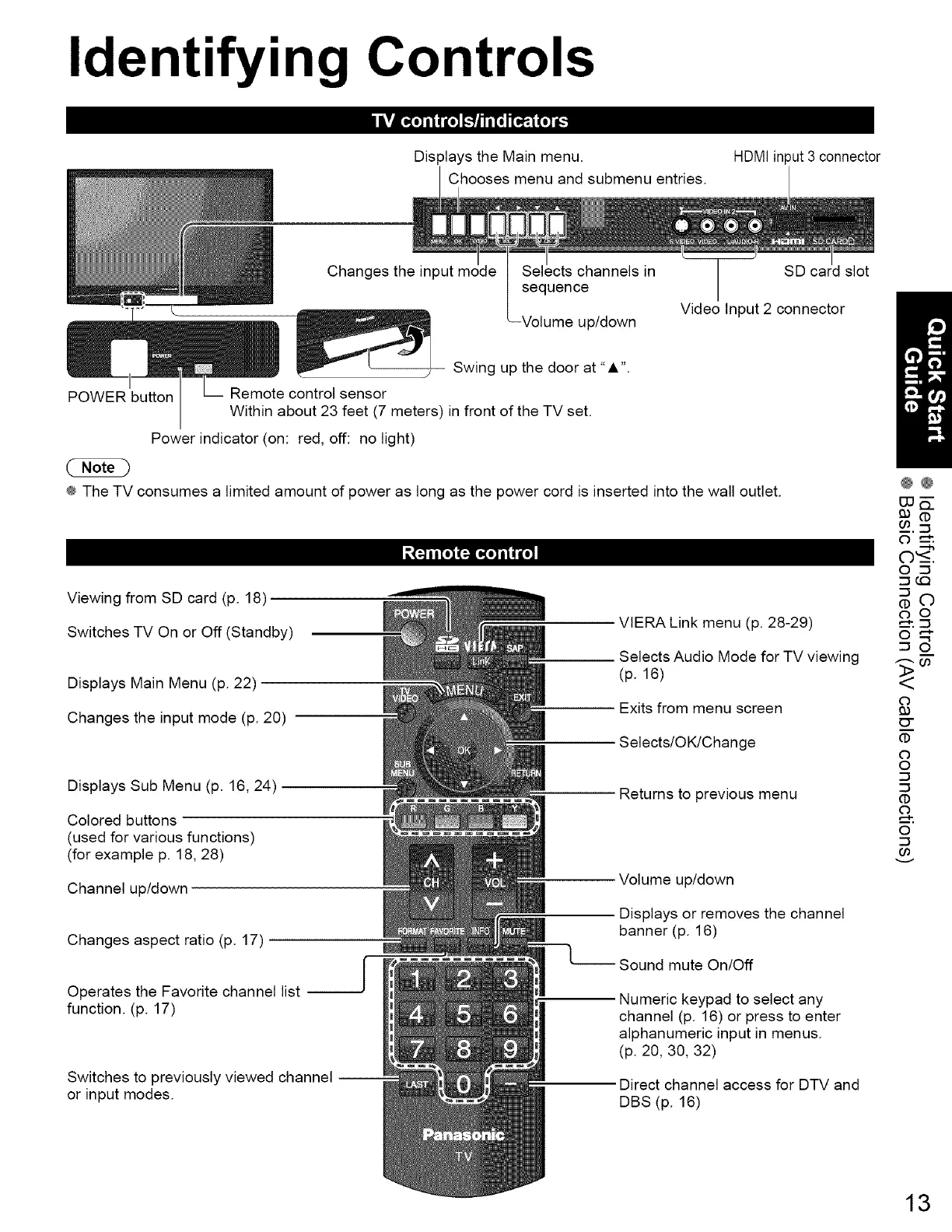 ÷ The TV consumes a limited amount of power as long as the power cord is inserted into the wall outlet.