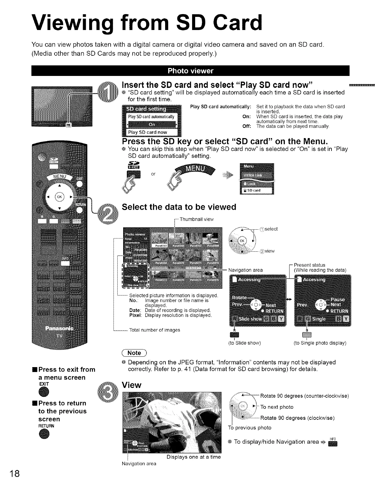 You can view photos taken with a digital camera or digital video camera and saved on an SD card.