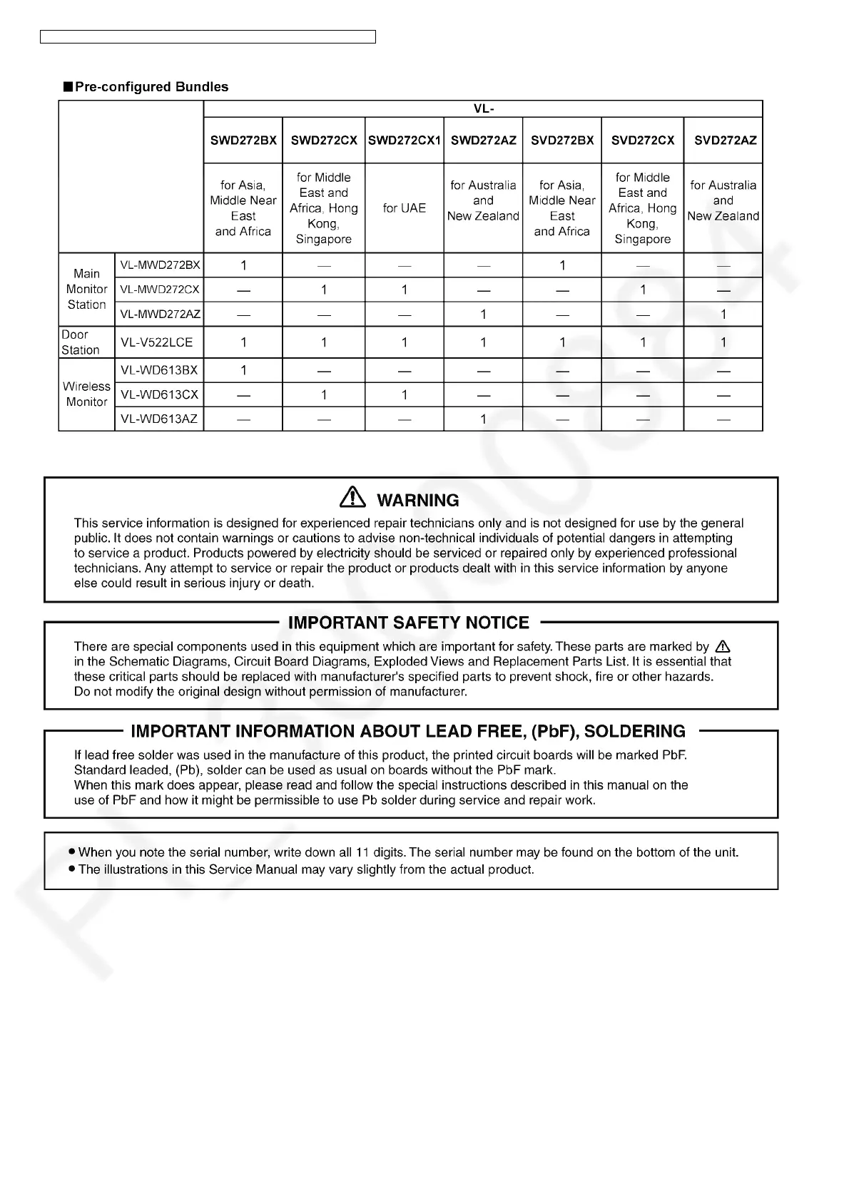 VL-SWD272BX/SWD272CX/SWD272CX1/SWD272AZ/VL-WD613CX/VL-WD613CX1