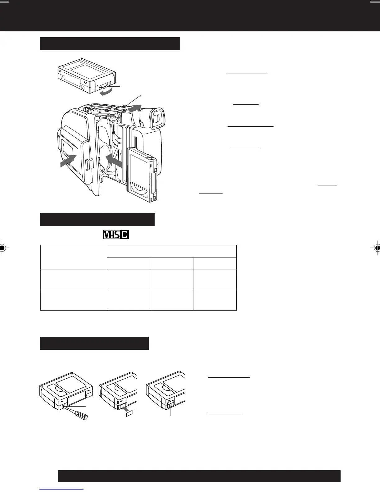 • To remove the cassette, slide the TAPE