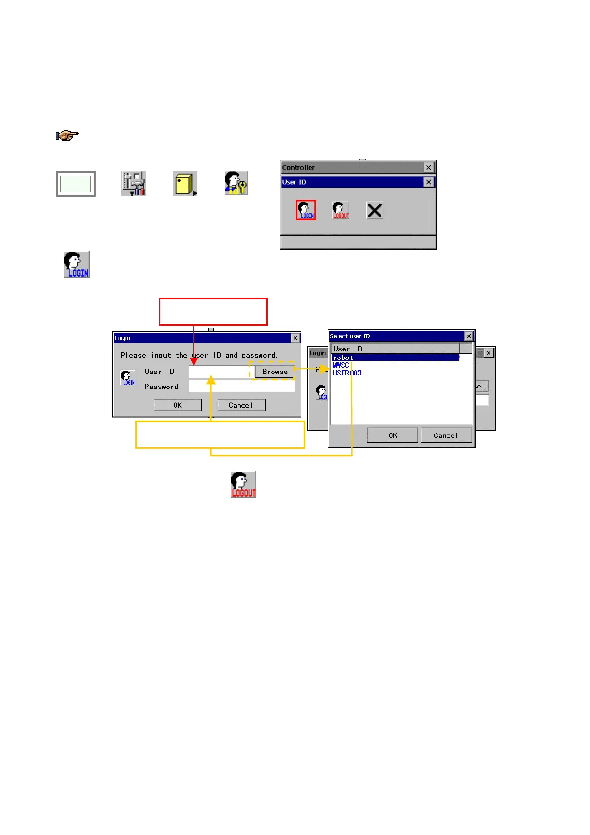icon to logout from the current user level and change to the operator