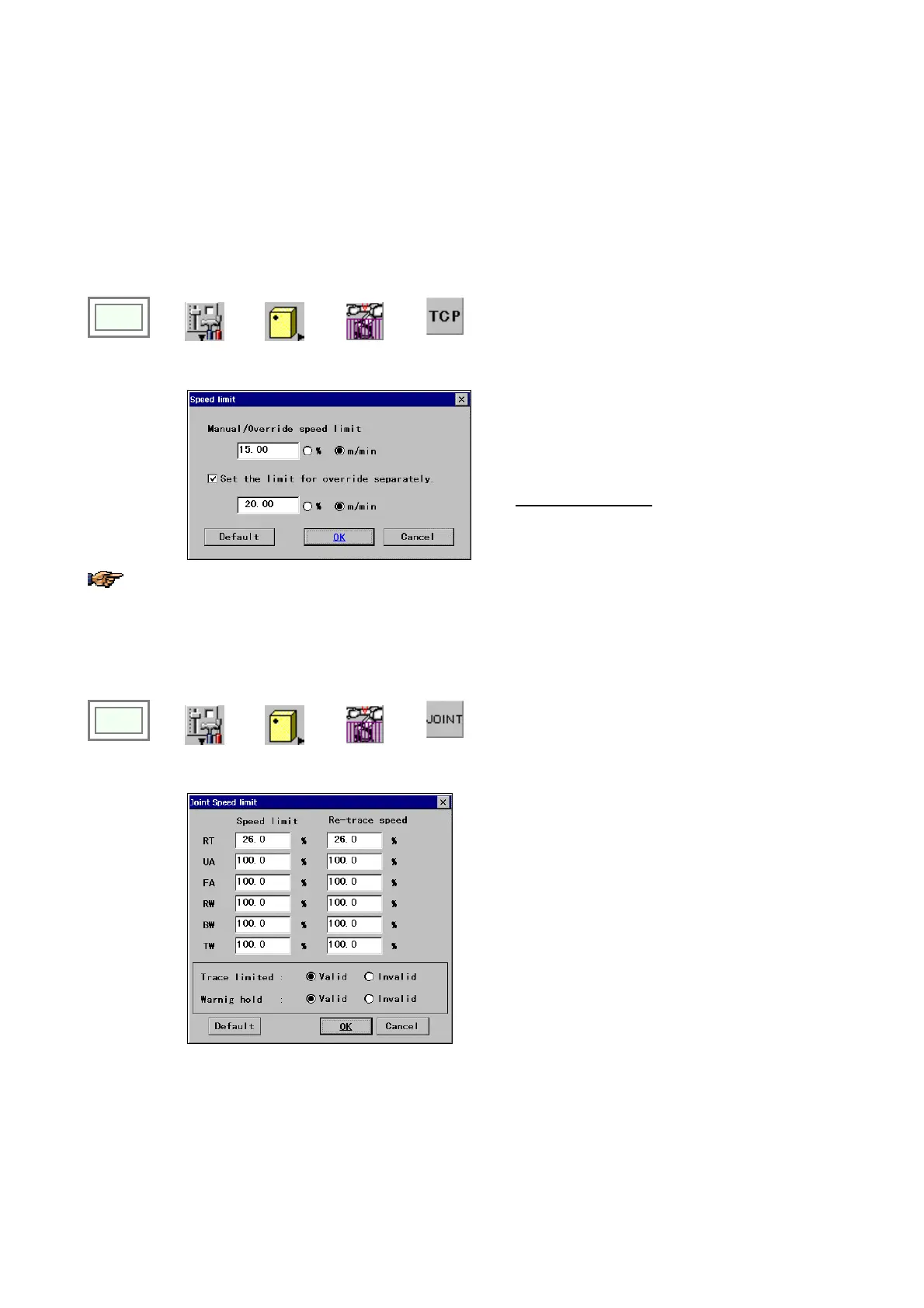 Limit speed set range varies with parts number of the robot controller and the robot manipulator.