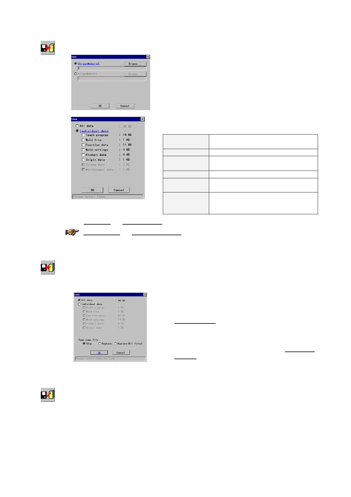 Function data All setting data in “I/O”, “Variable”, “Robot”,