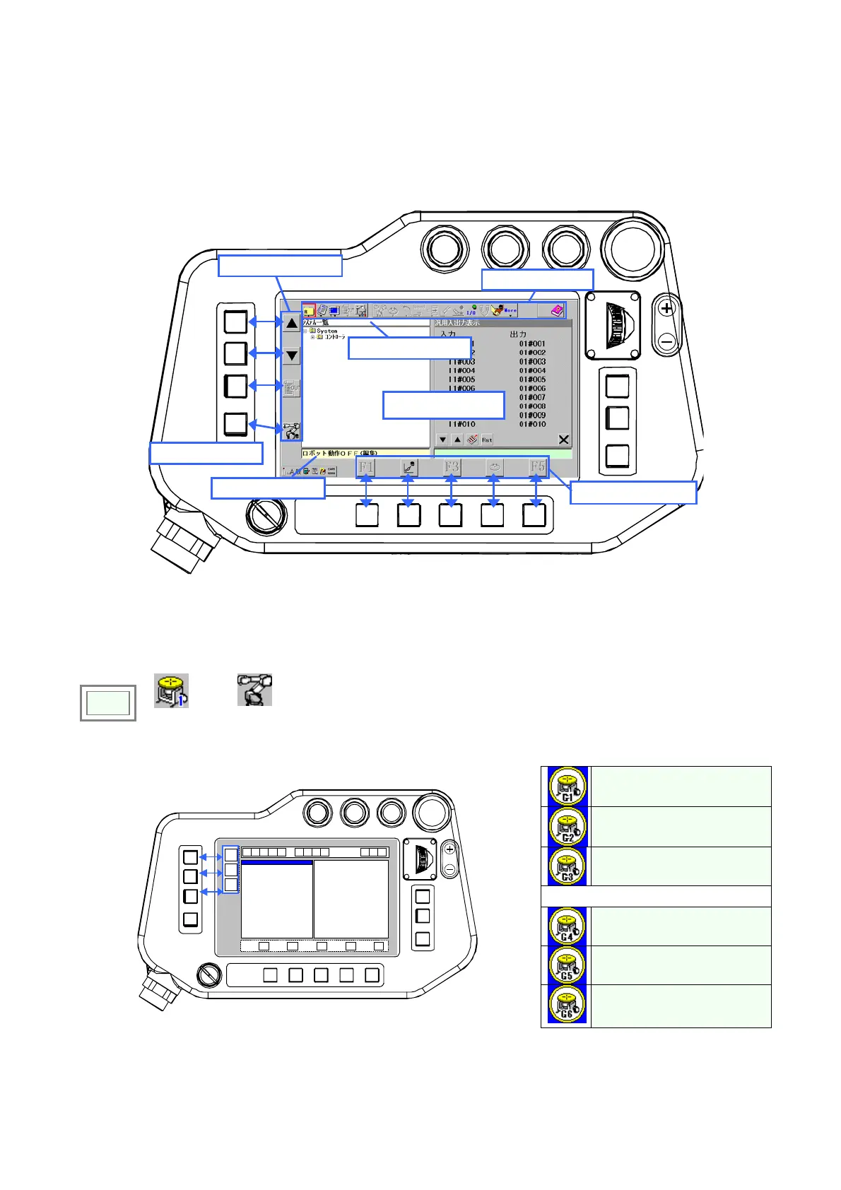 The teach pendant provides a variety of icons that identify functions on the screen that can make your work easier.