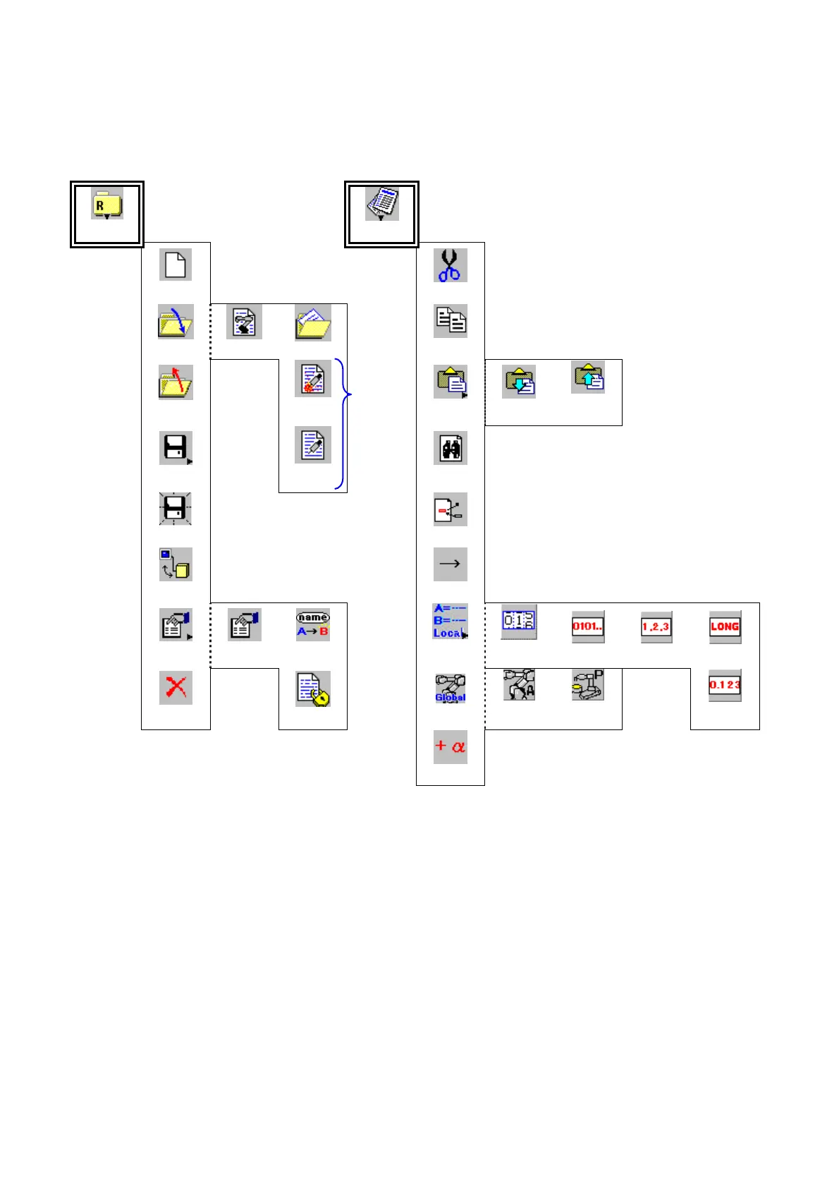 Main and submenu icons (down to the 3rd level) are listed as follows.