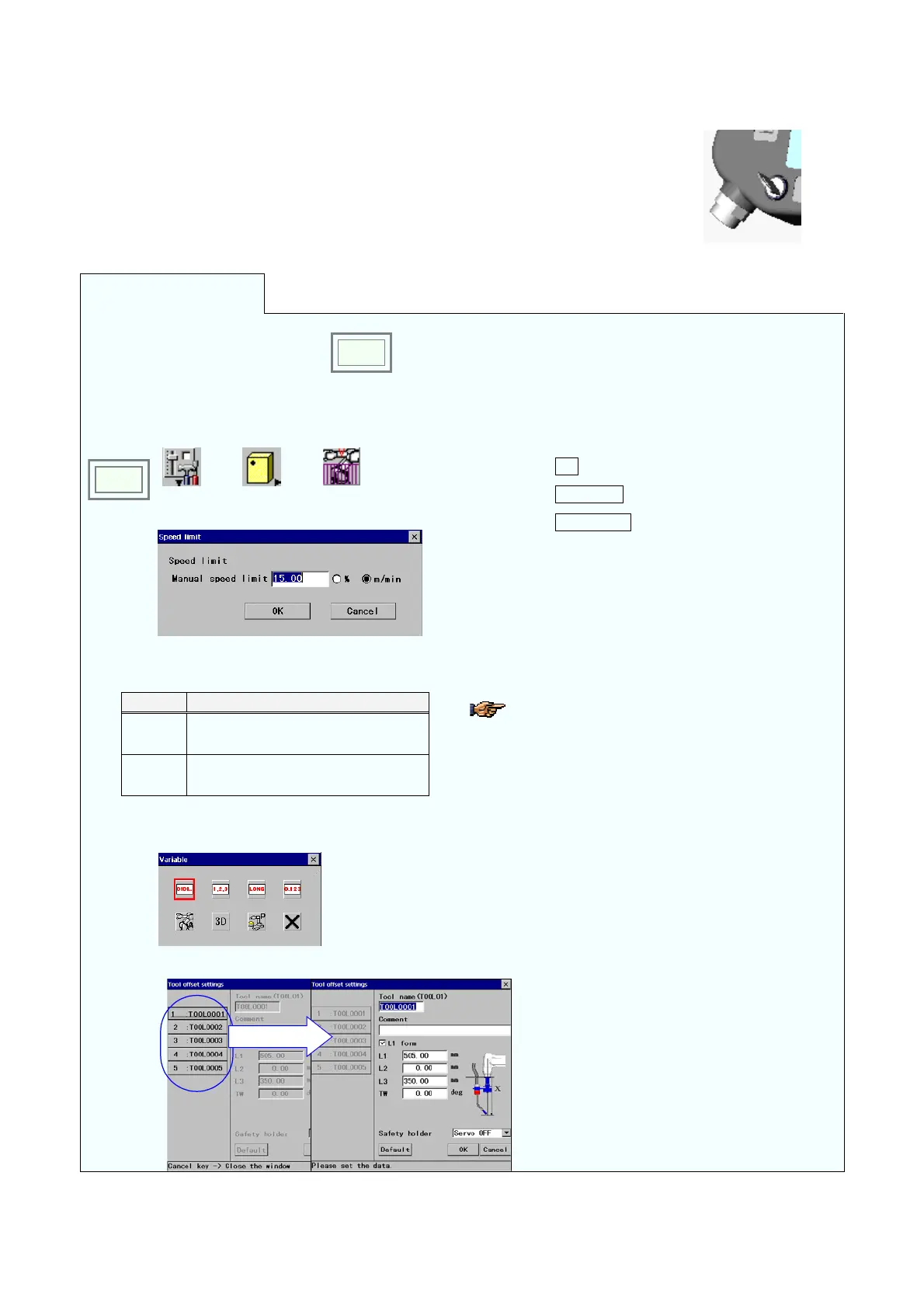 This manual explains the procedure to display a setting dialog box of each setting item using icons.