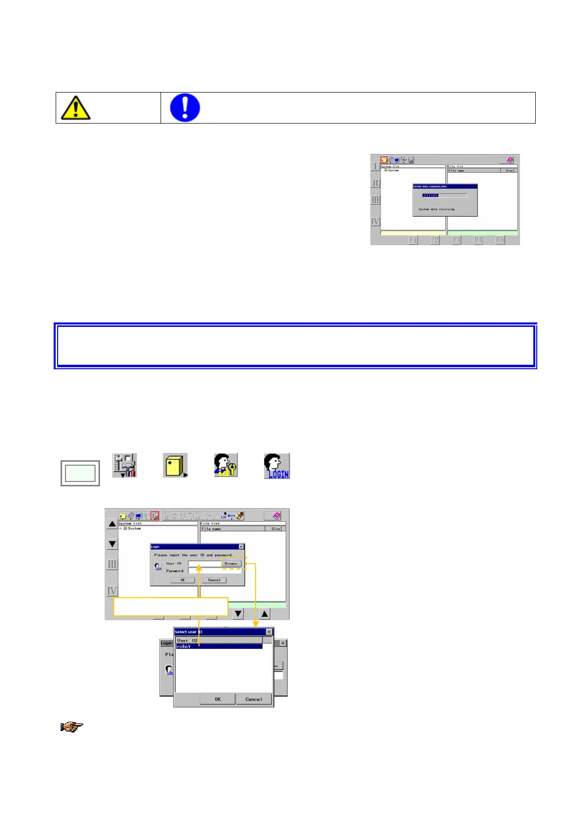 You must set the User ID to perform teaching or changing of robot settings. It is so designed that with the User ID