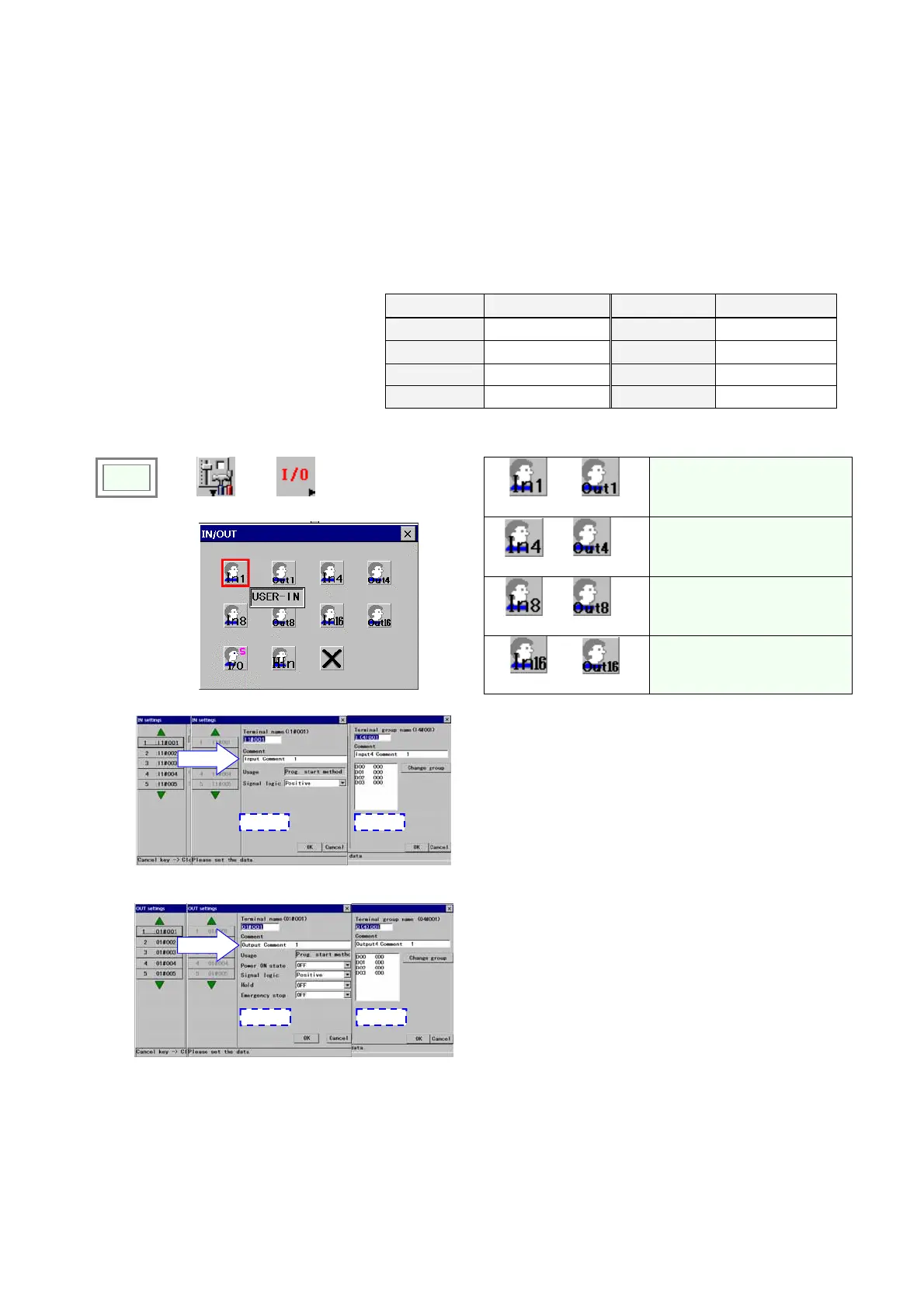 Settings of terminals to be connected to other system equipment to receive signals to the robot (Input terminals or “Input”)