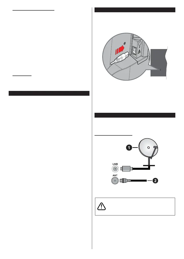 (ANT) socket or satellite plug to the satellite input (LNB)