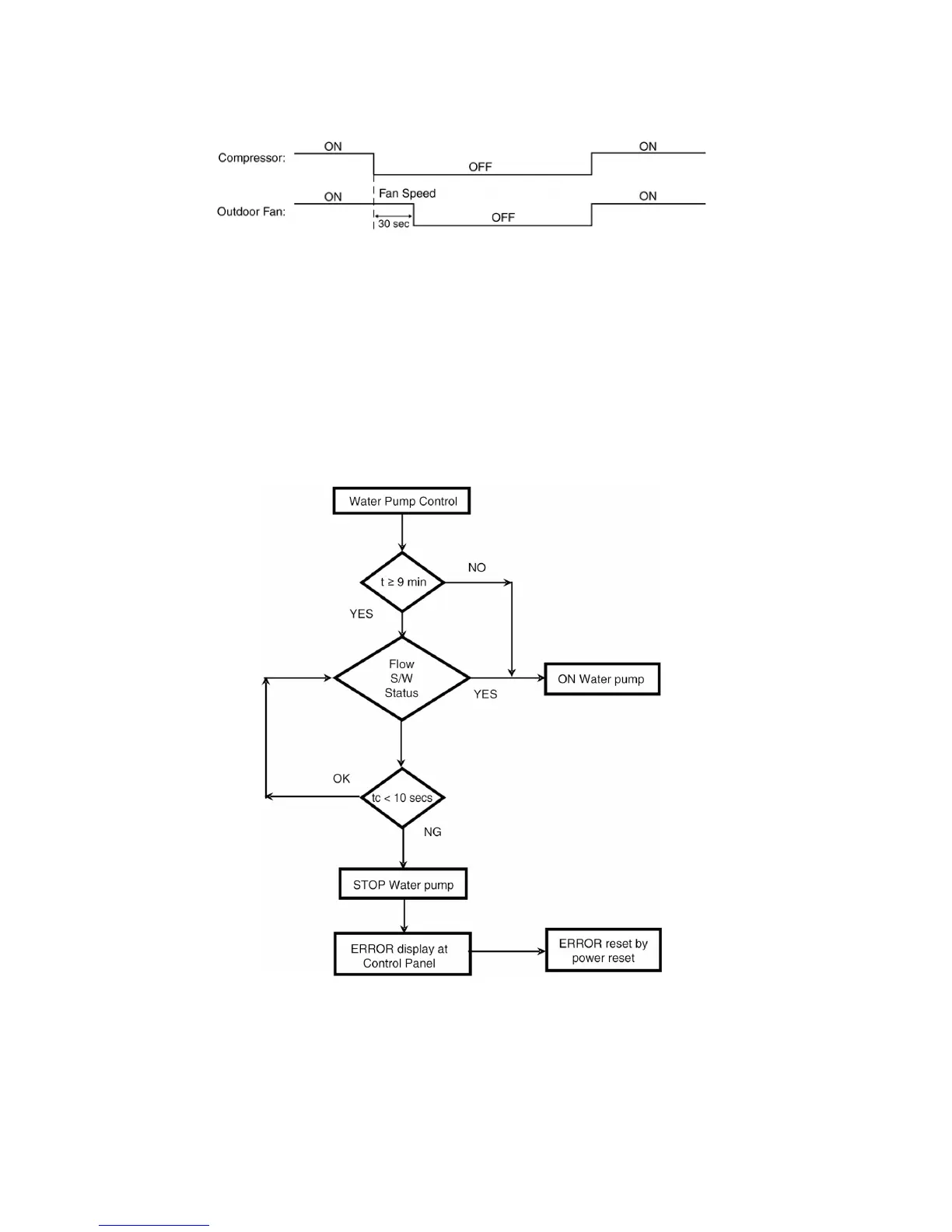 detected low continuously for 10 secs, the water pump and compressor will be OFF permanently and OFF/ON