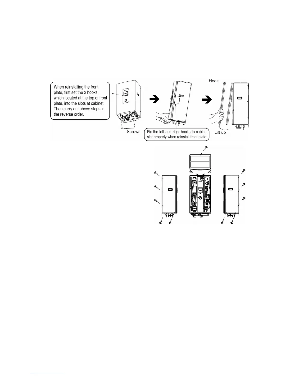 3 Hold the left edge and right edge of front plate to lift up front plate from hooks.
