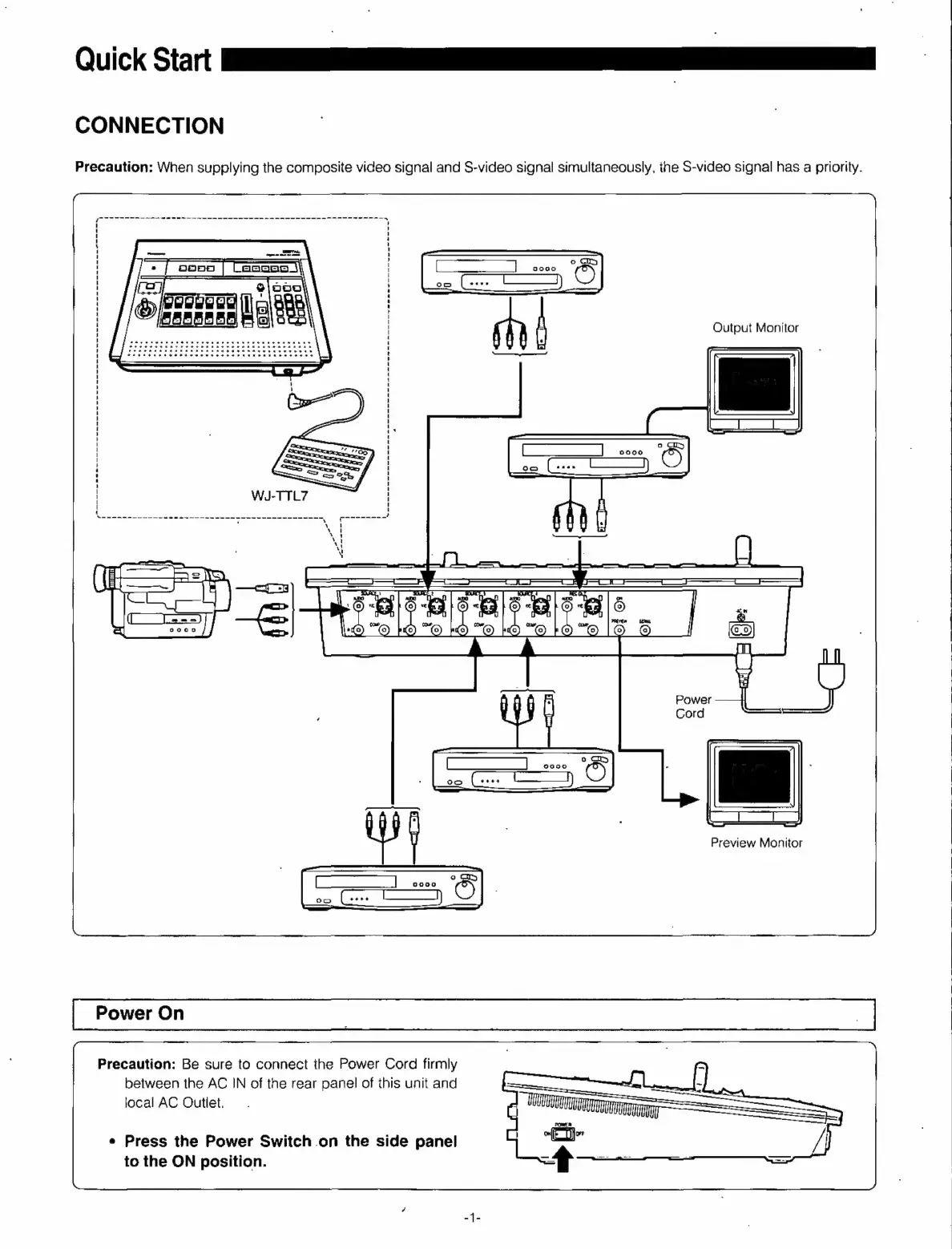 Panasonic WJ-AVE55 - Quick Start Guide; CONNECTION; Power On Procedure