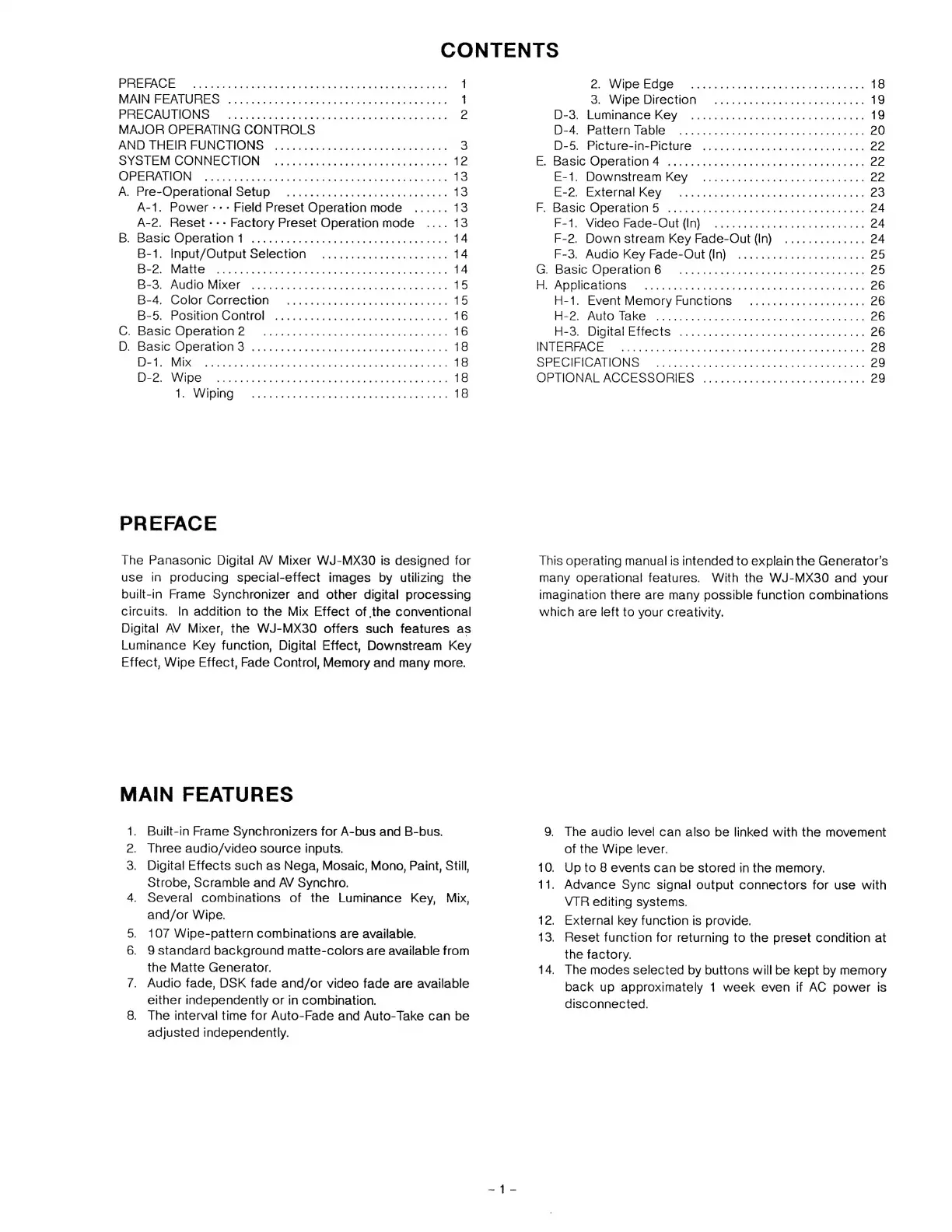 Panasonic WJ-MX30 - Preface; Main Features Overview; Safety and Handling Precautions; Major Operating Controls