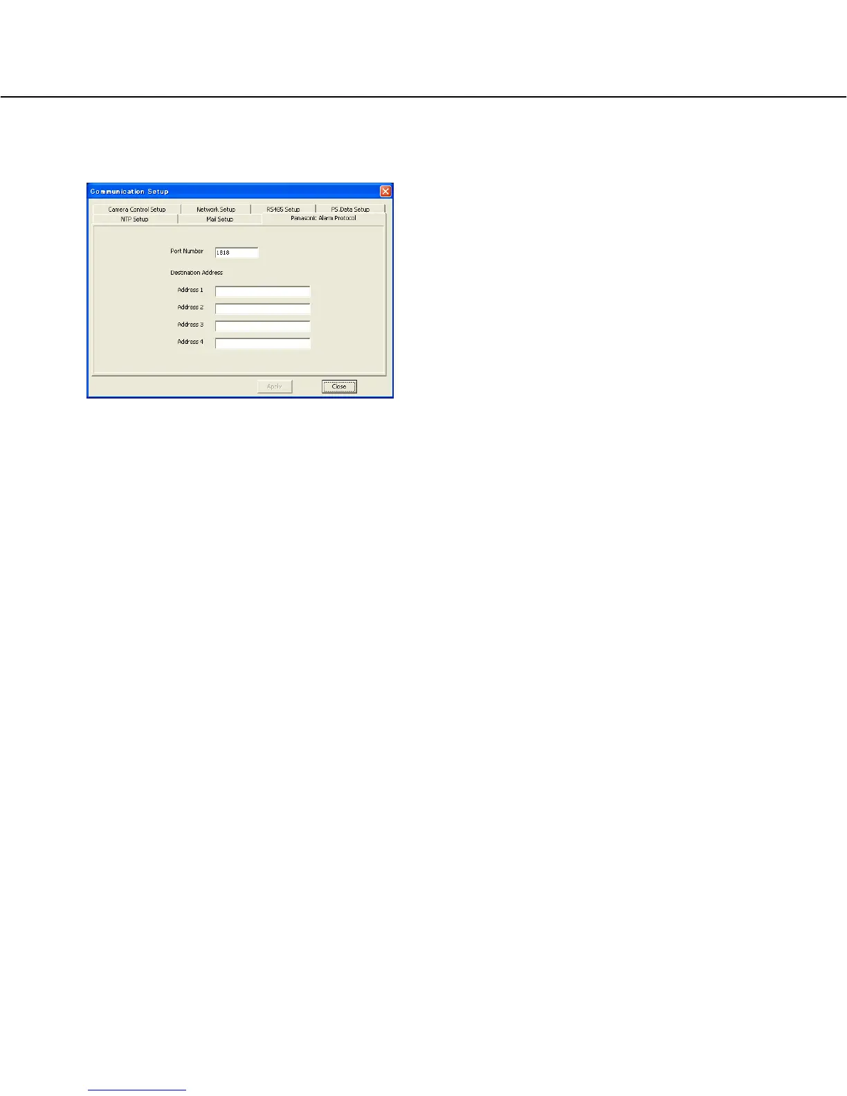 [Panasonic Alarm Protocol] tab