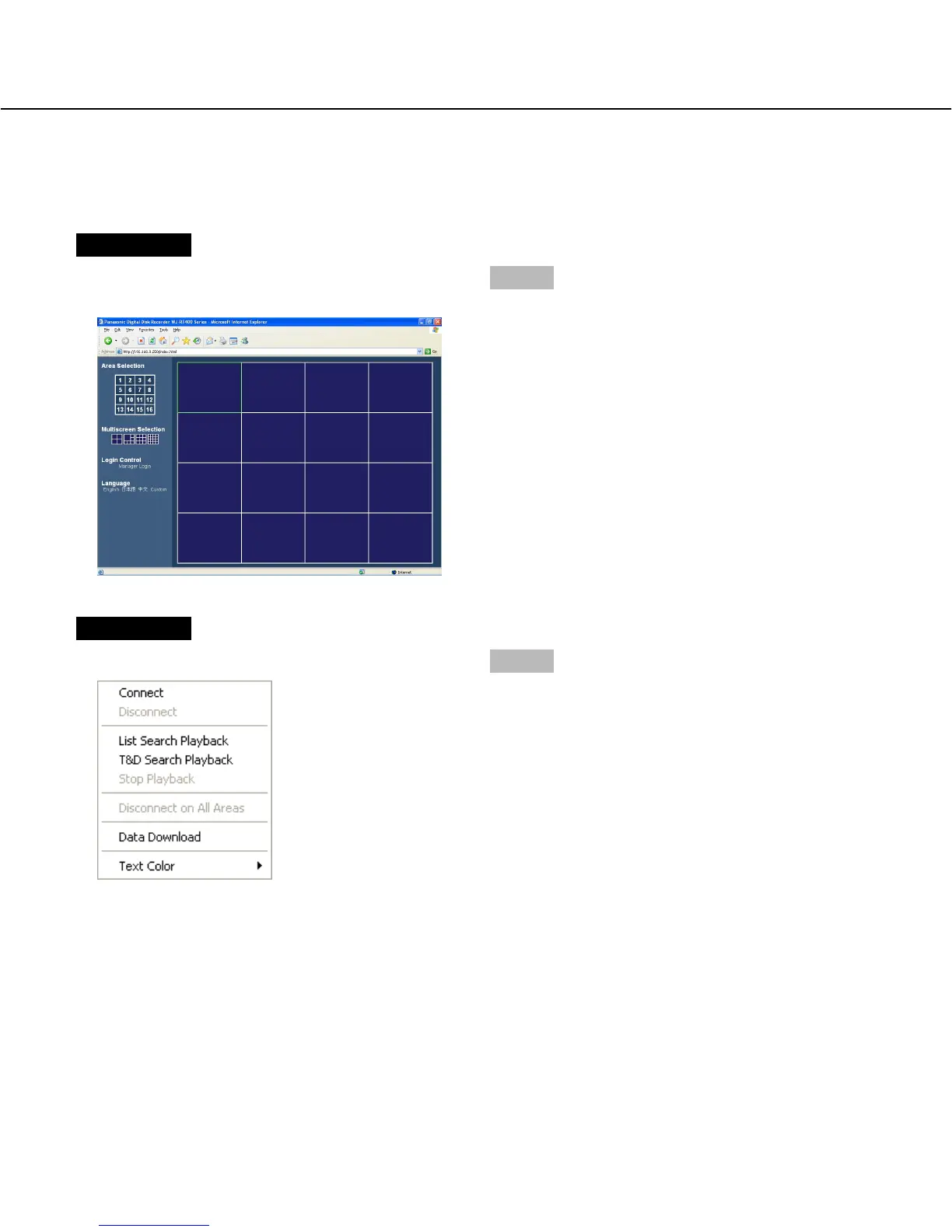 It is possible to display live images on a 1-screen or a multi-screen in the image display area.