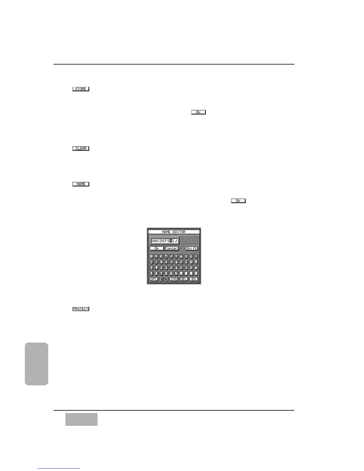 the [NAME EDITOR] window, and press the ENTER button. The MEMORY
