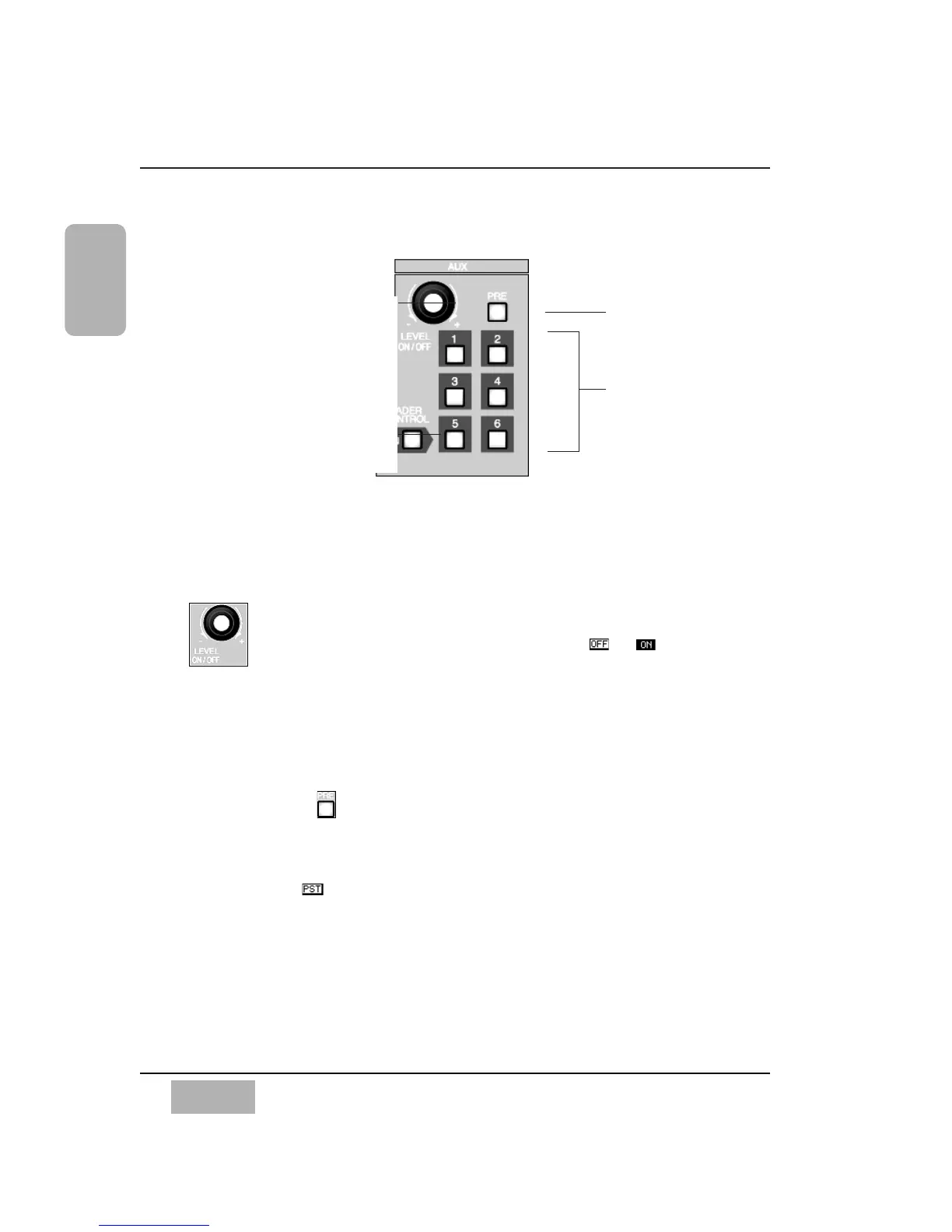 AUXs 1-6, PRE (pre-fader), and FADER CONTROL.