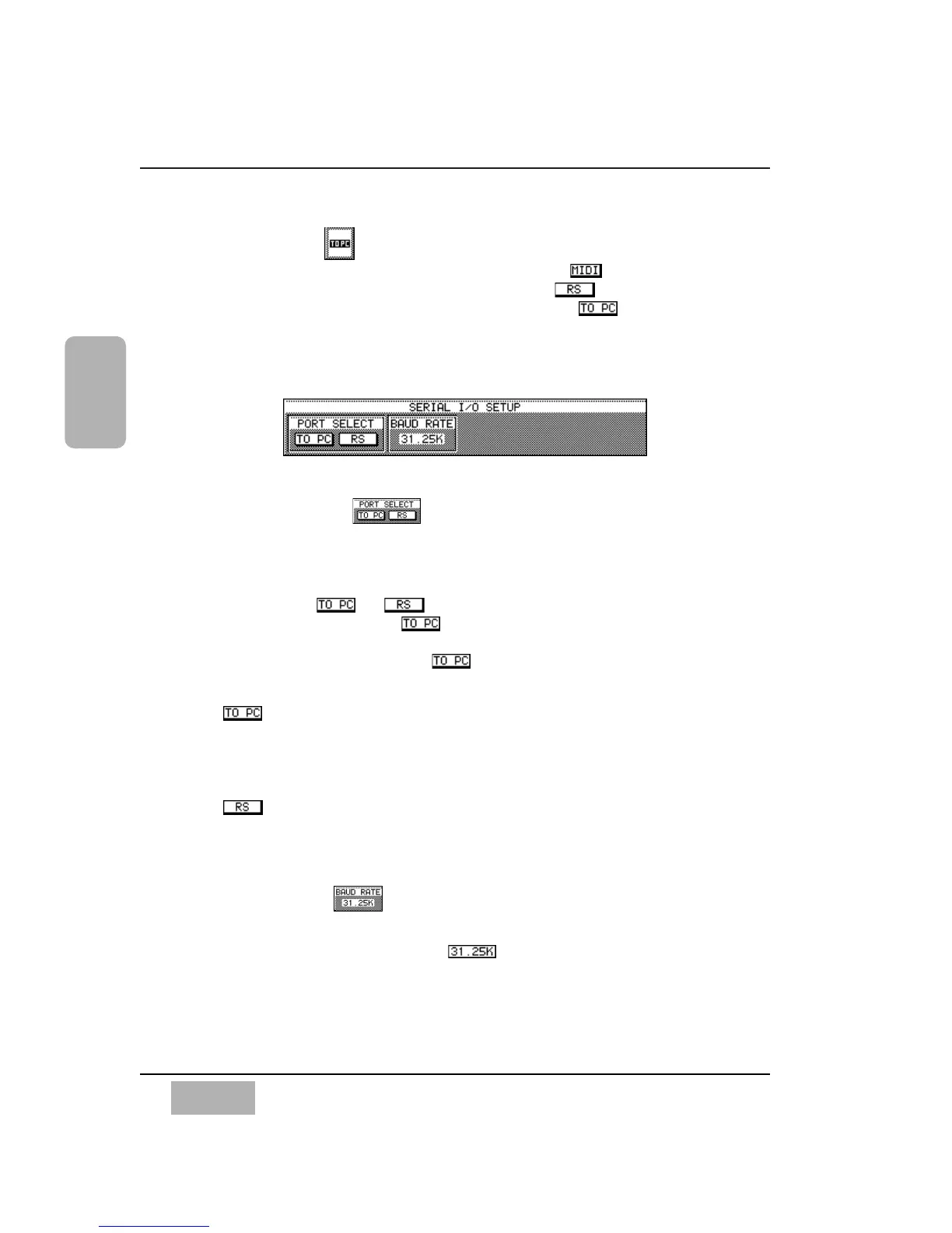 This button selects RS485 for the serial I/O port. Cursor to the button,