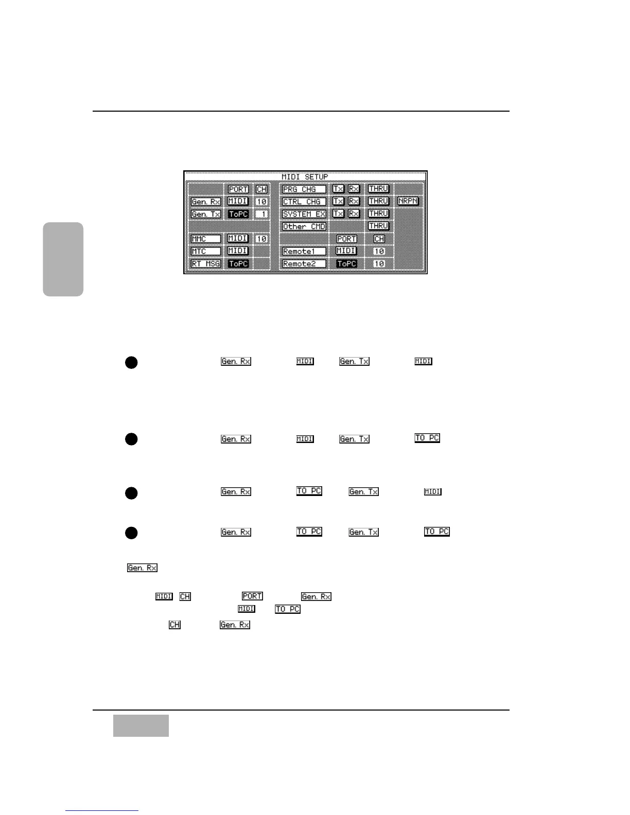 MIDI SETUP Area