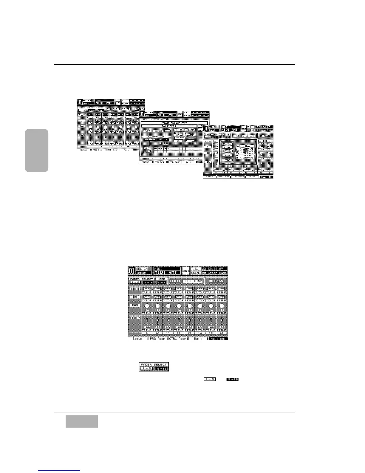 These windows display and set MIDI remote operations for the external MIDI