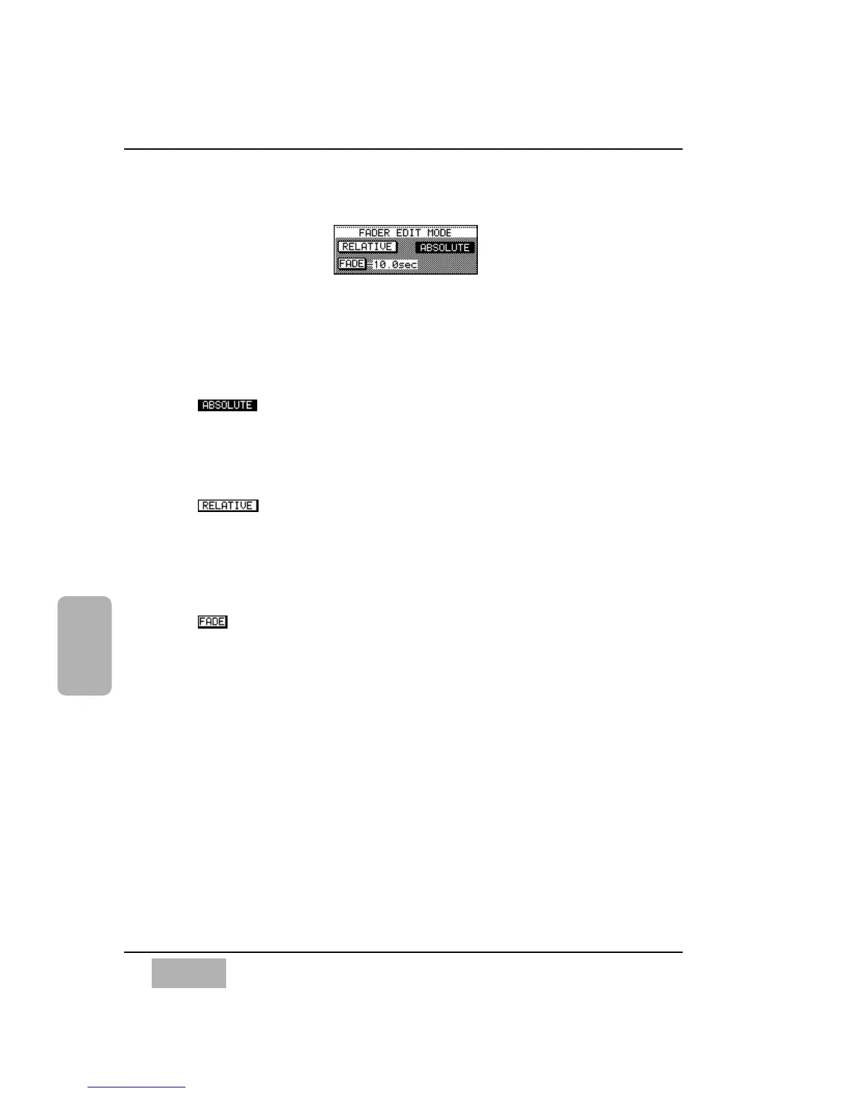 This mode selects the fader to move in a relative manner verses the