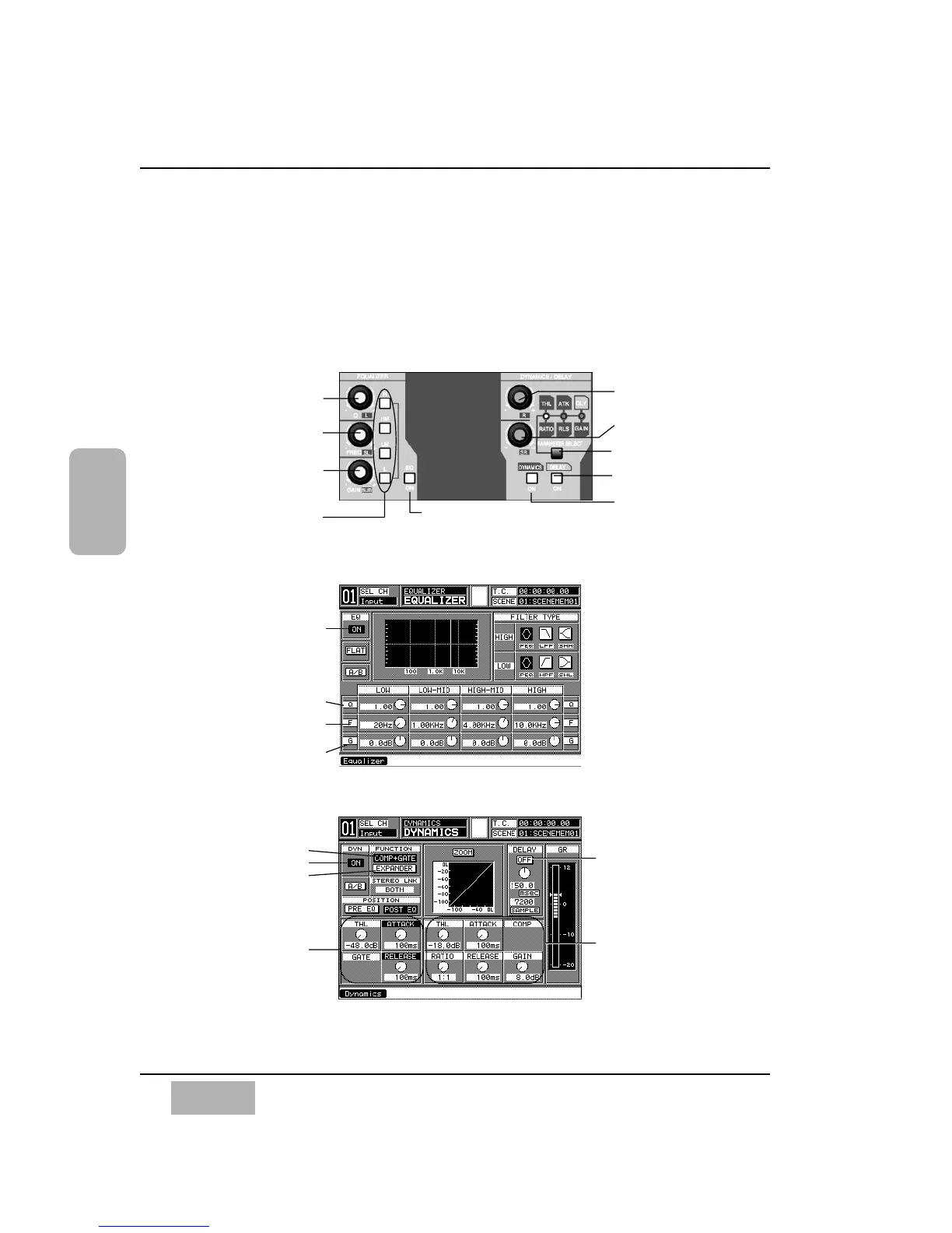 input channels. AUX 1-6 Returns have a 2 band Parametric Equalizer.
