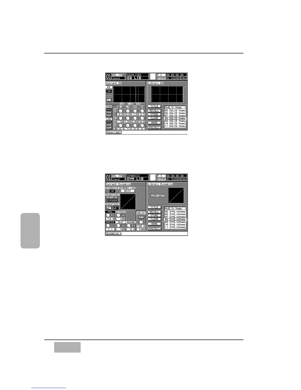 Panel will display the [EQ LIB] window. Pressing either the STORE or
