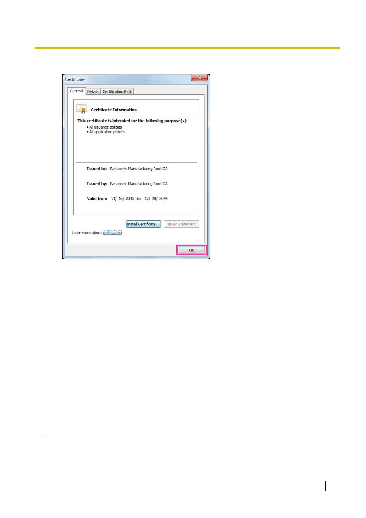 10. Click the [OK] button in the “Certificate” window to close the window.