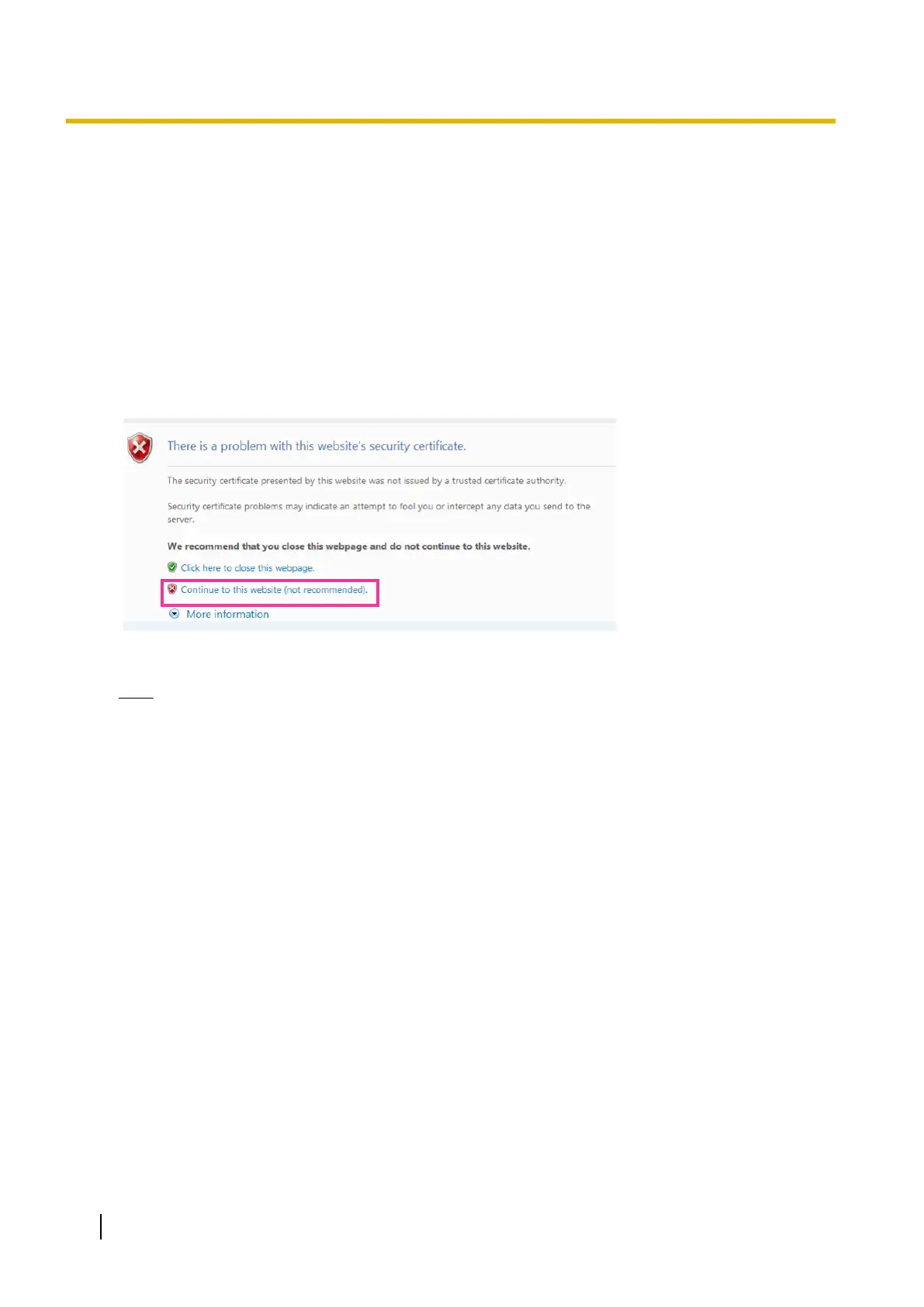2. When the security alert window is displayed, click “Continue to this website (not recommended).”
