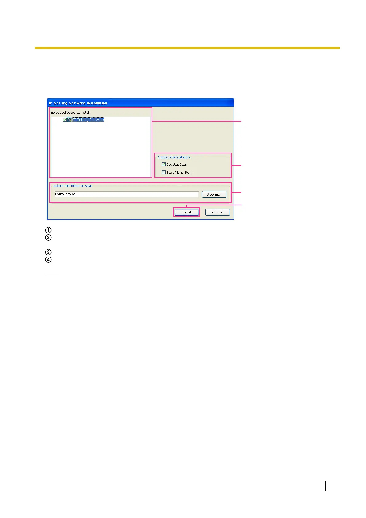 Specify which folder on the PC to install the Panasonic “IP Setting Software” to.