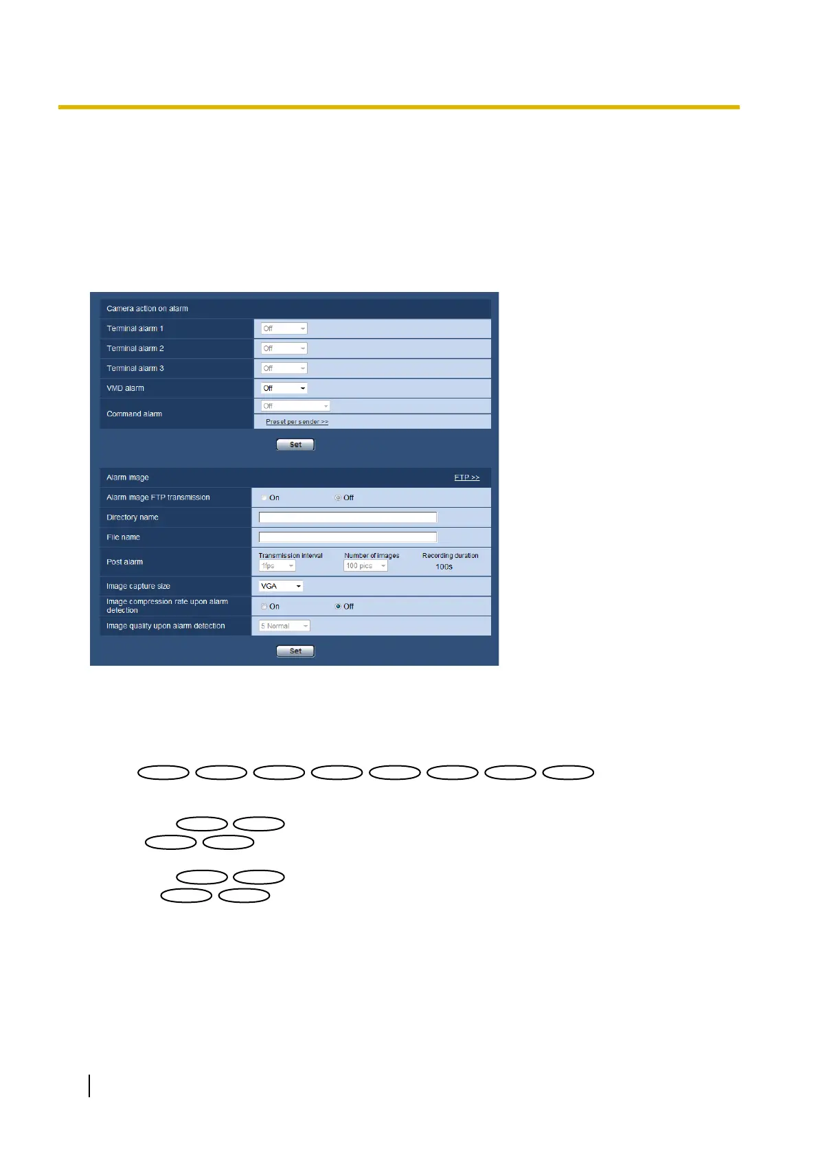 The settings relating to the camera action at an alarm occurrence can be configured in this section. Refer to