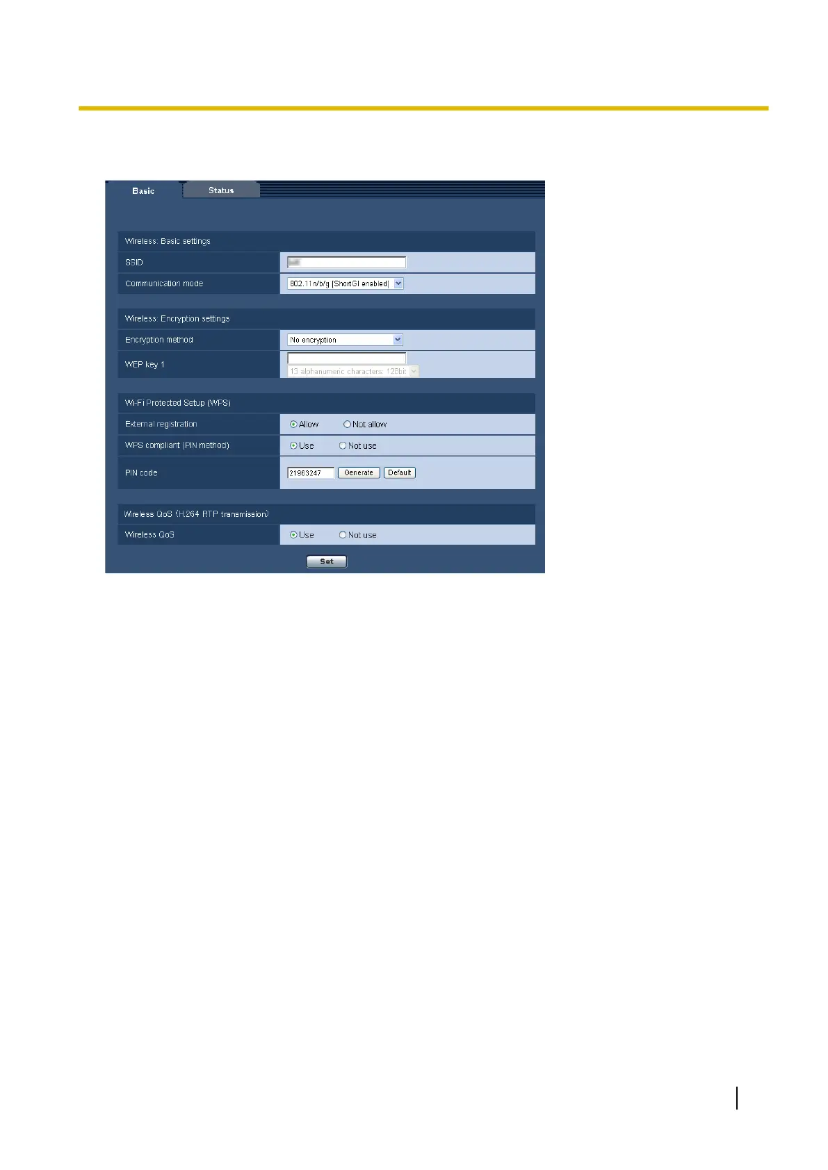 The wireless settings can be manually configured to the camera in this section, and the camera can be