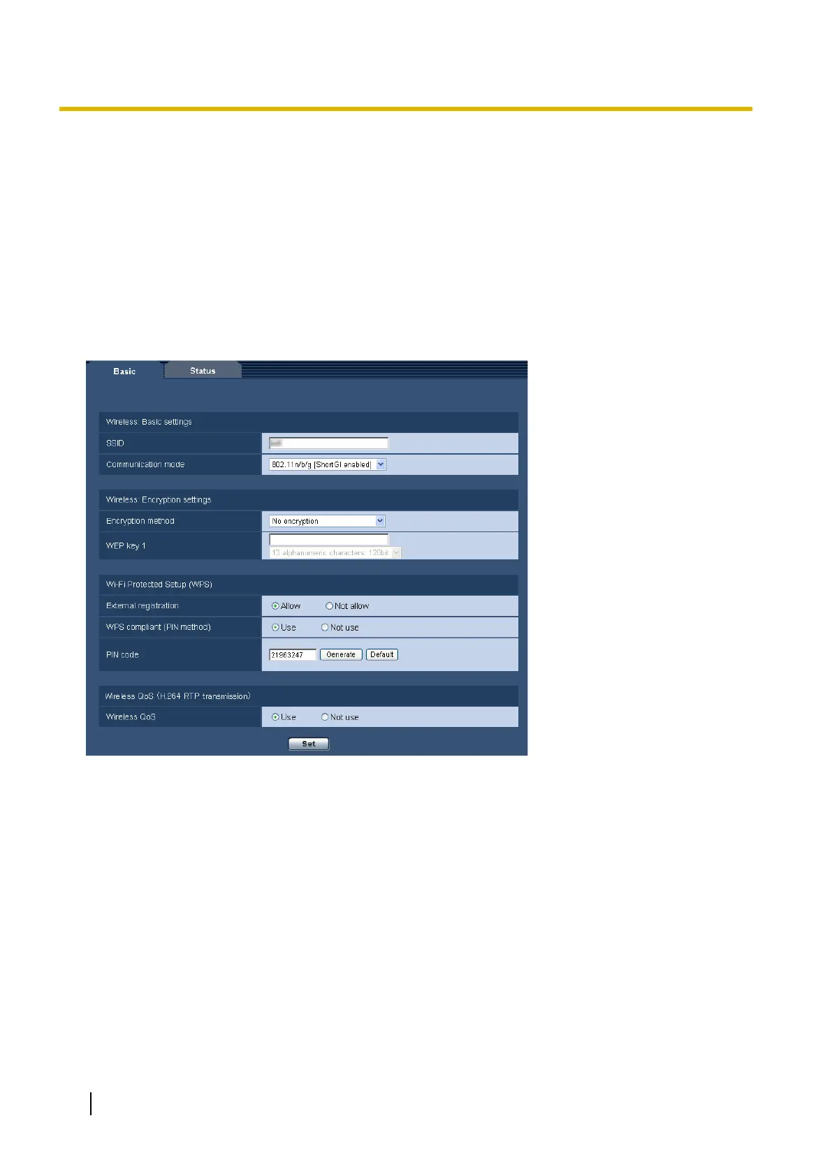Click the [Basic] tab on the “Wireless” page. (®page 47, page 49)