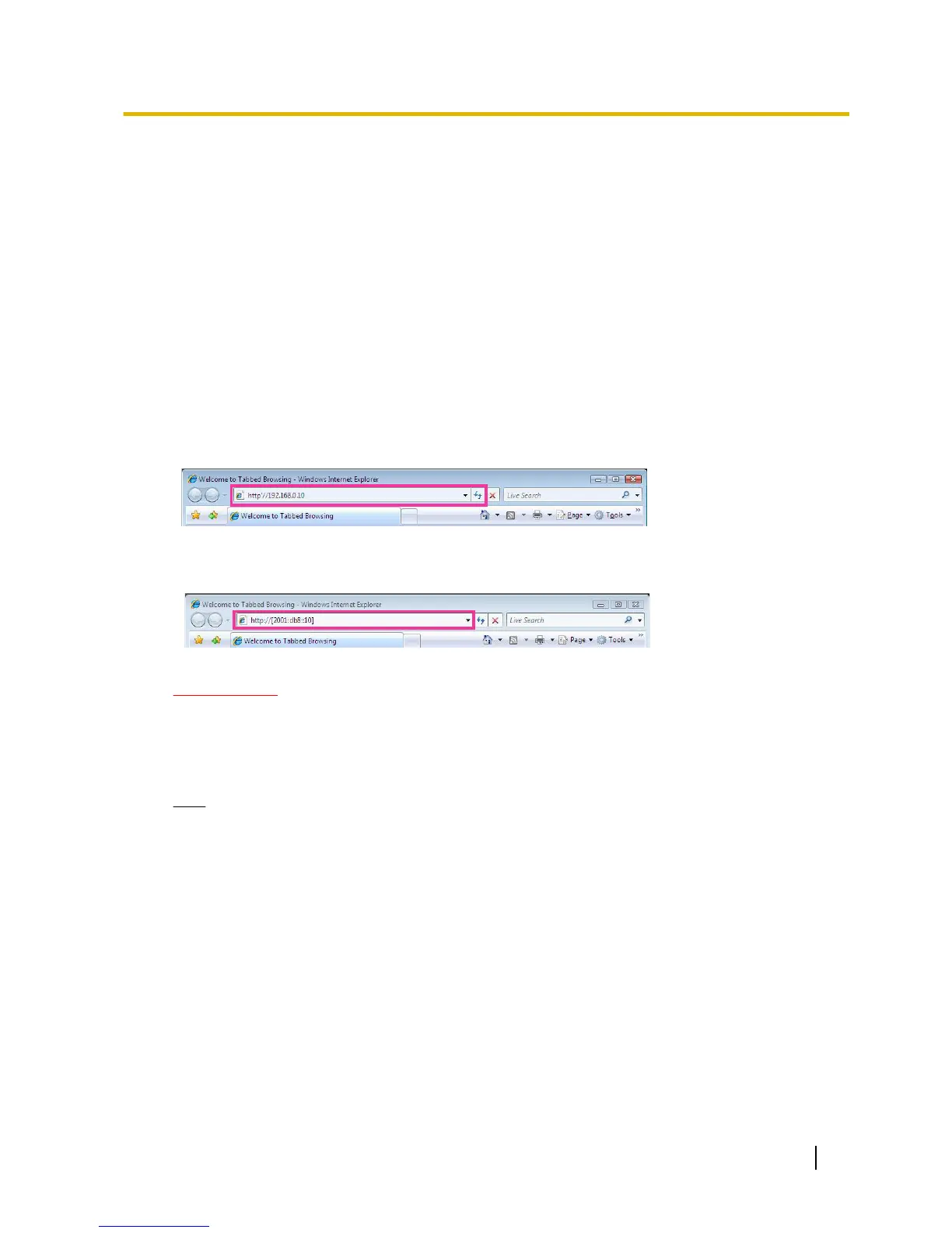 • Example when entering an IPv6 address: http://[URL registered using IPv6 address]