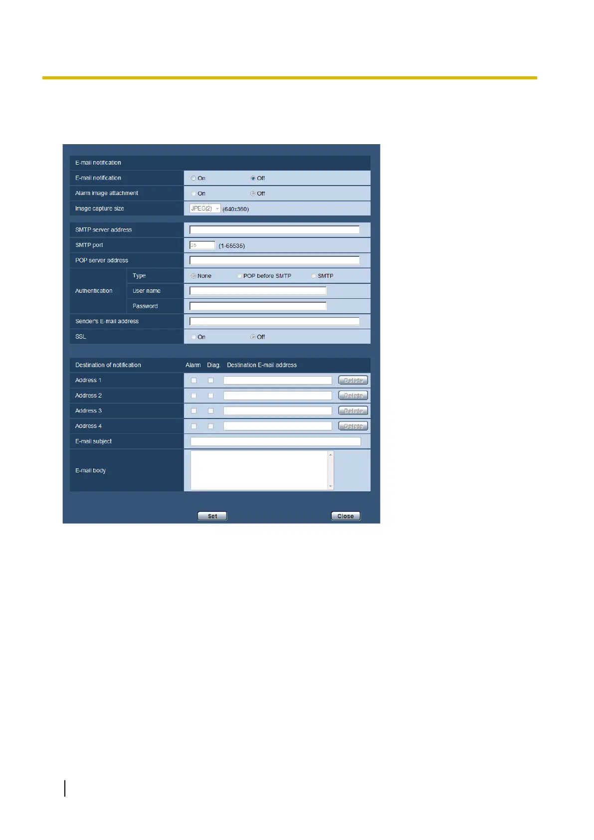 Panasonic WV-SFN310 - Configure Settings Relating to Alarm E-Mail Notifications