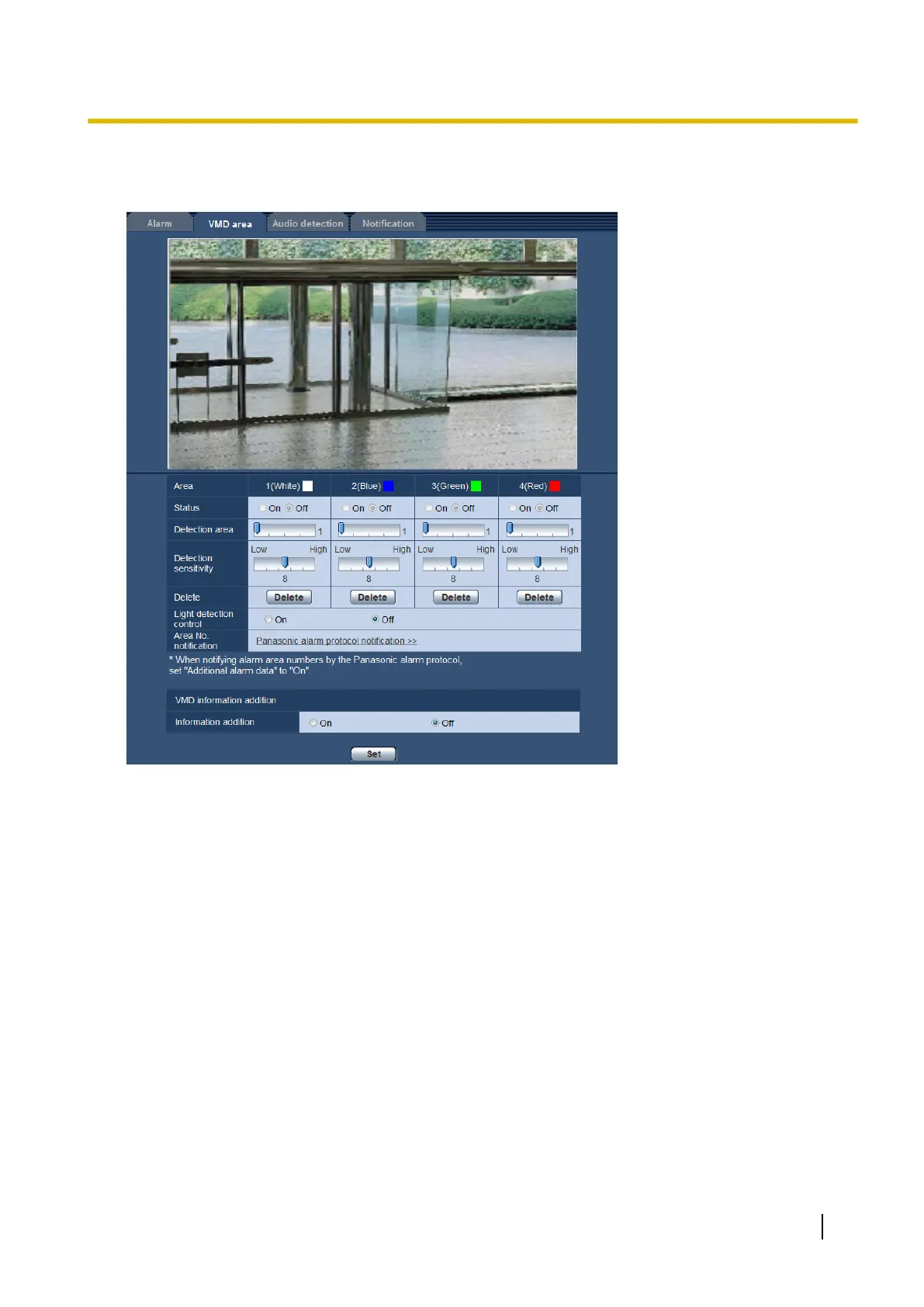 each area individually. The larger the value is set, the higher the sensitivity level becomes.