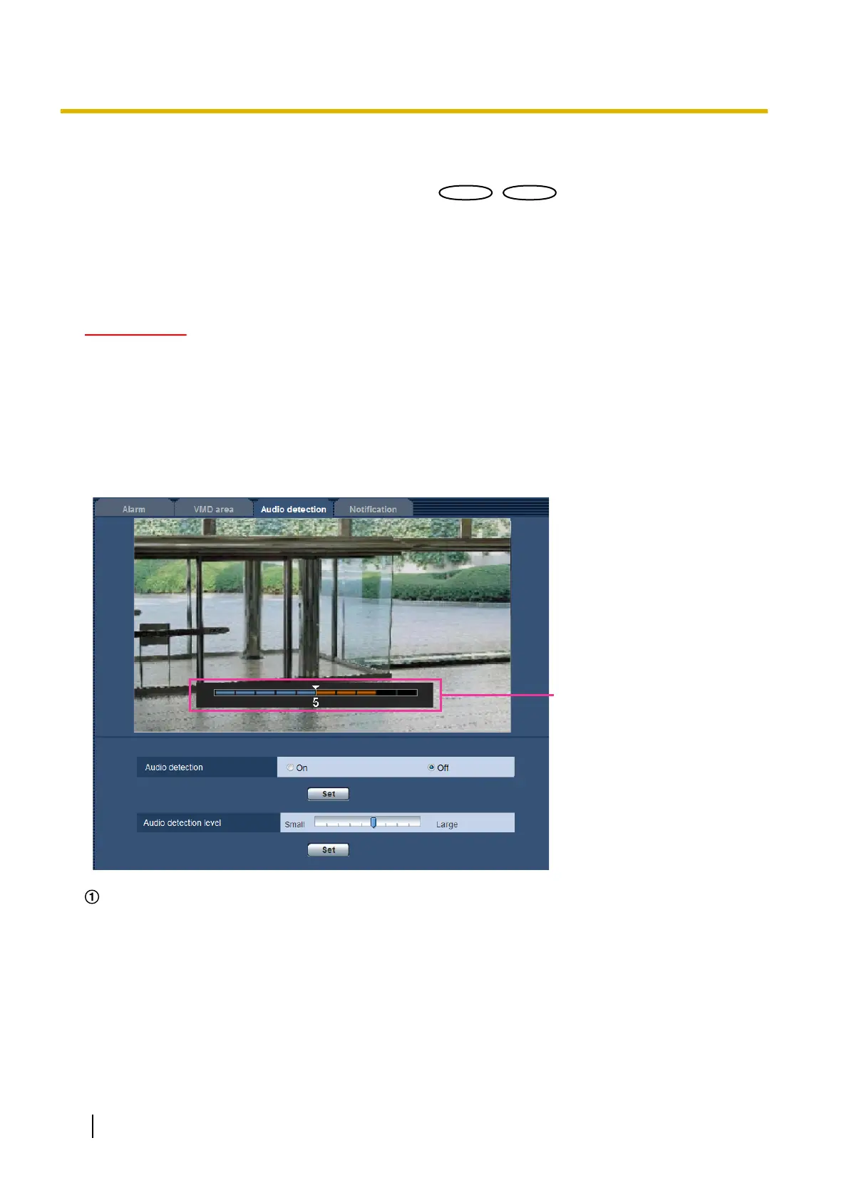 Click the [Audio detection] tab on the “Alarm” page. (®page 40, page 42)
