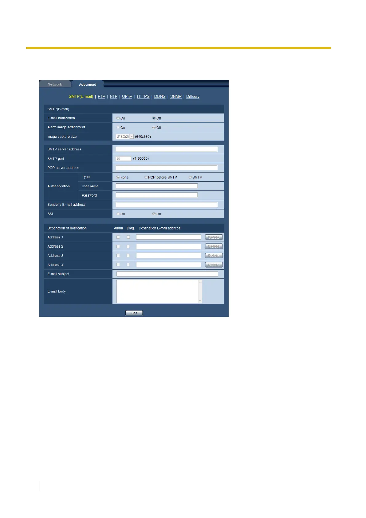 Select “On” or “Off” to determine whether or not to attach an image to the E-mail to be sent when an alarm is