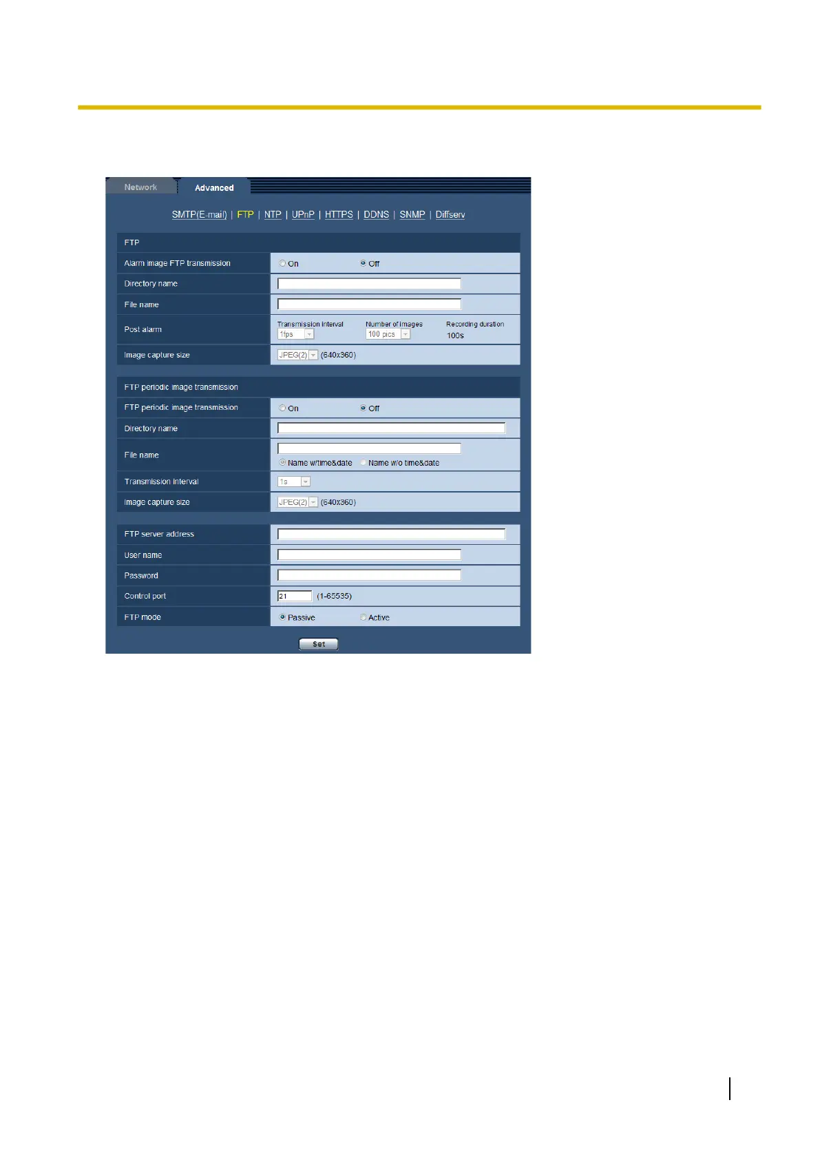 Select “On” or “Off” to determine whether or not to transmit the alarm image to the FTP server.