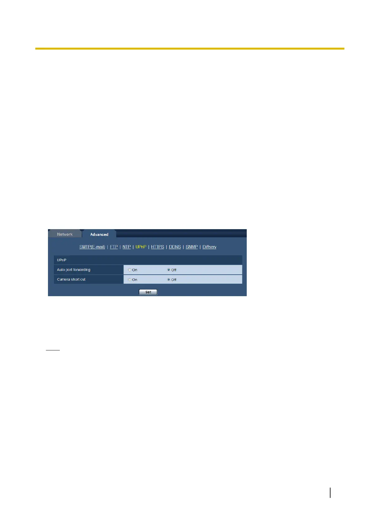 • The UPnP function is available when the camera is connected to the IPv4 network. IPv6 is not