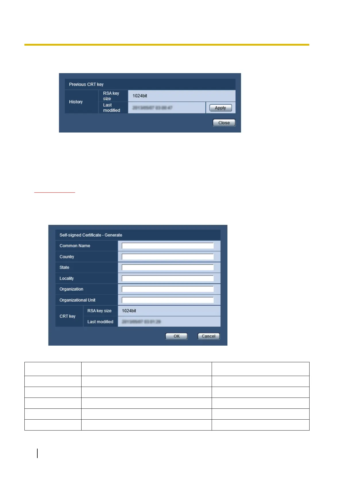 • If the CRT key is not generated, it is impossible to generate the self-signed certificate.