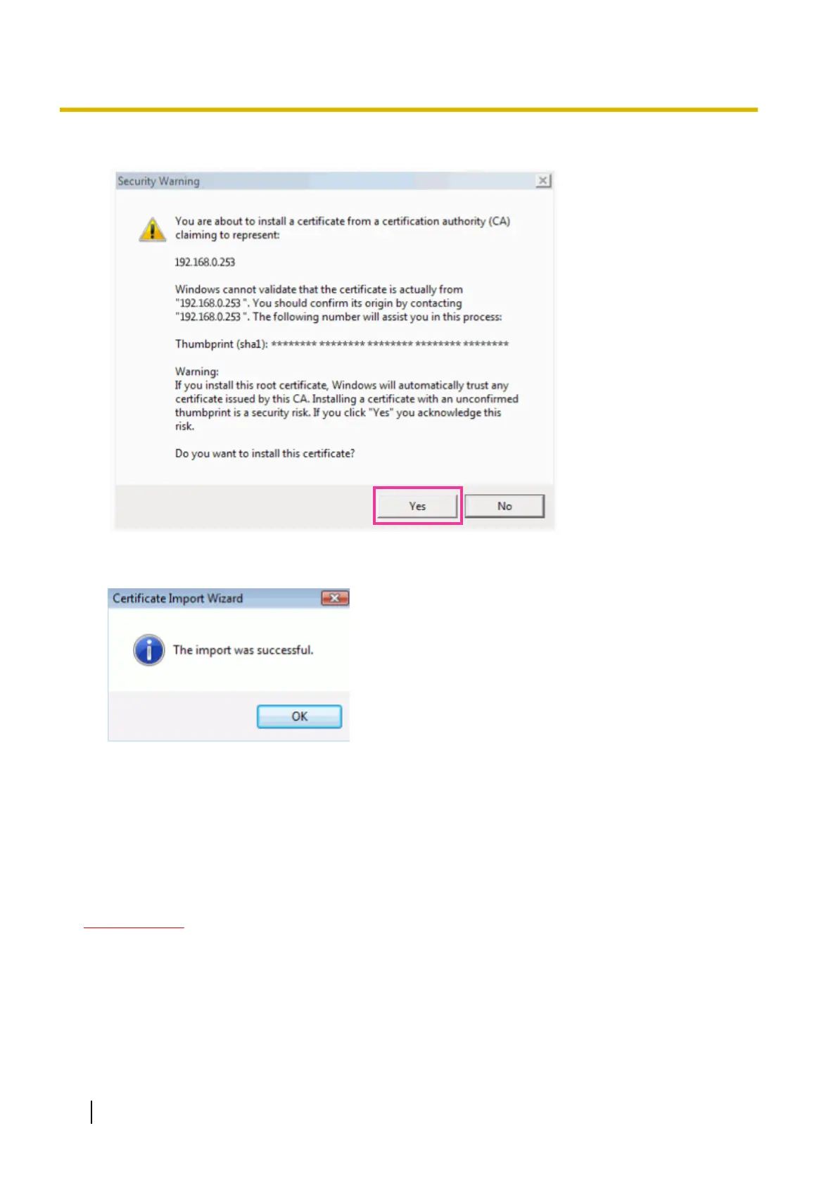 → When the browser is restarted after the certificate is imported, “Certificate Error” will not be displayed.