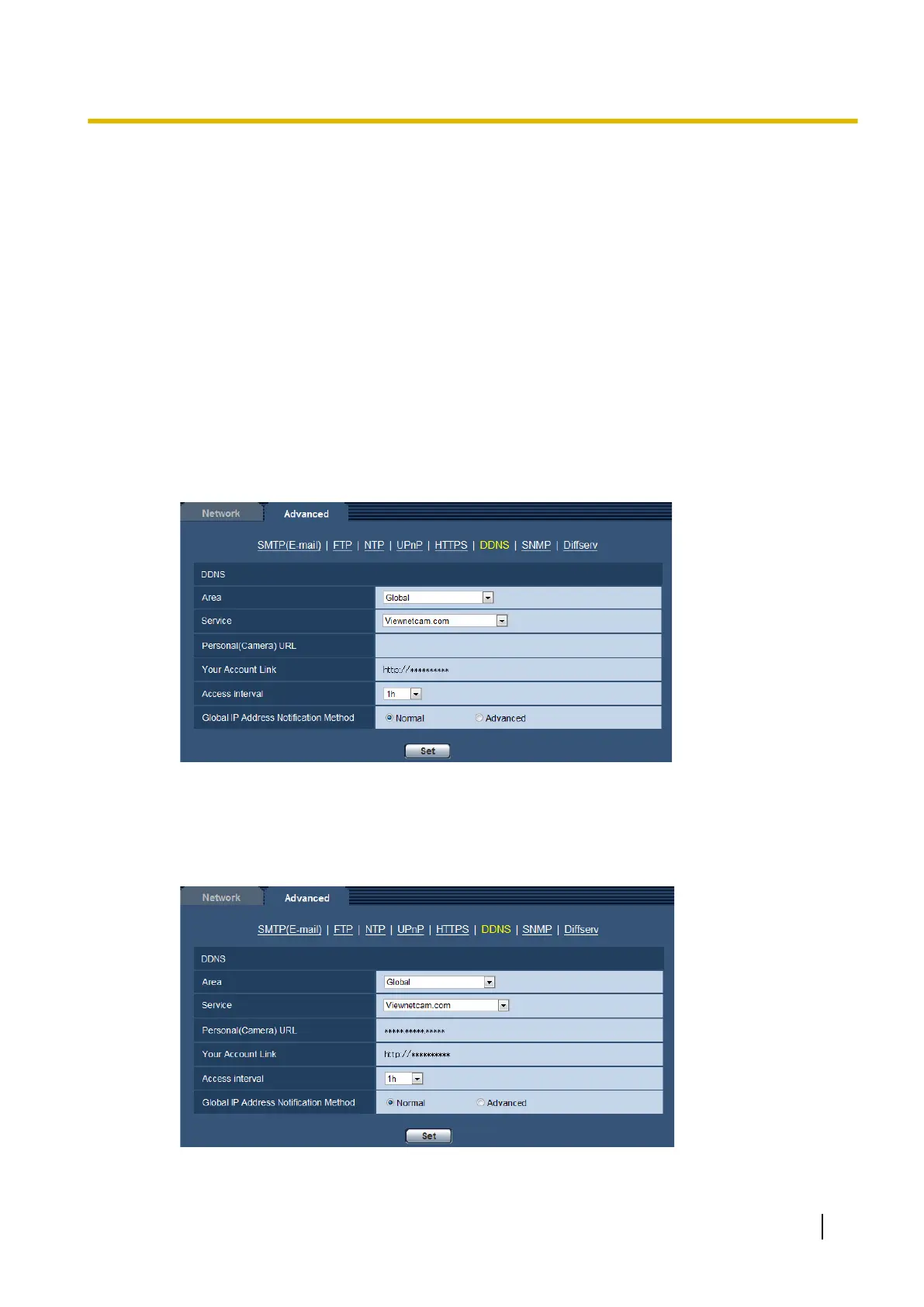 1. Select [Viewnetcam.com] for [Service] and click the [Set] button.