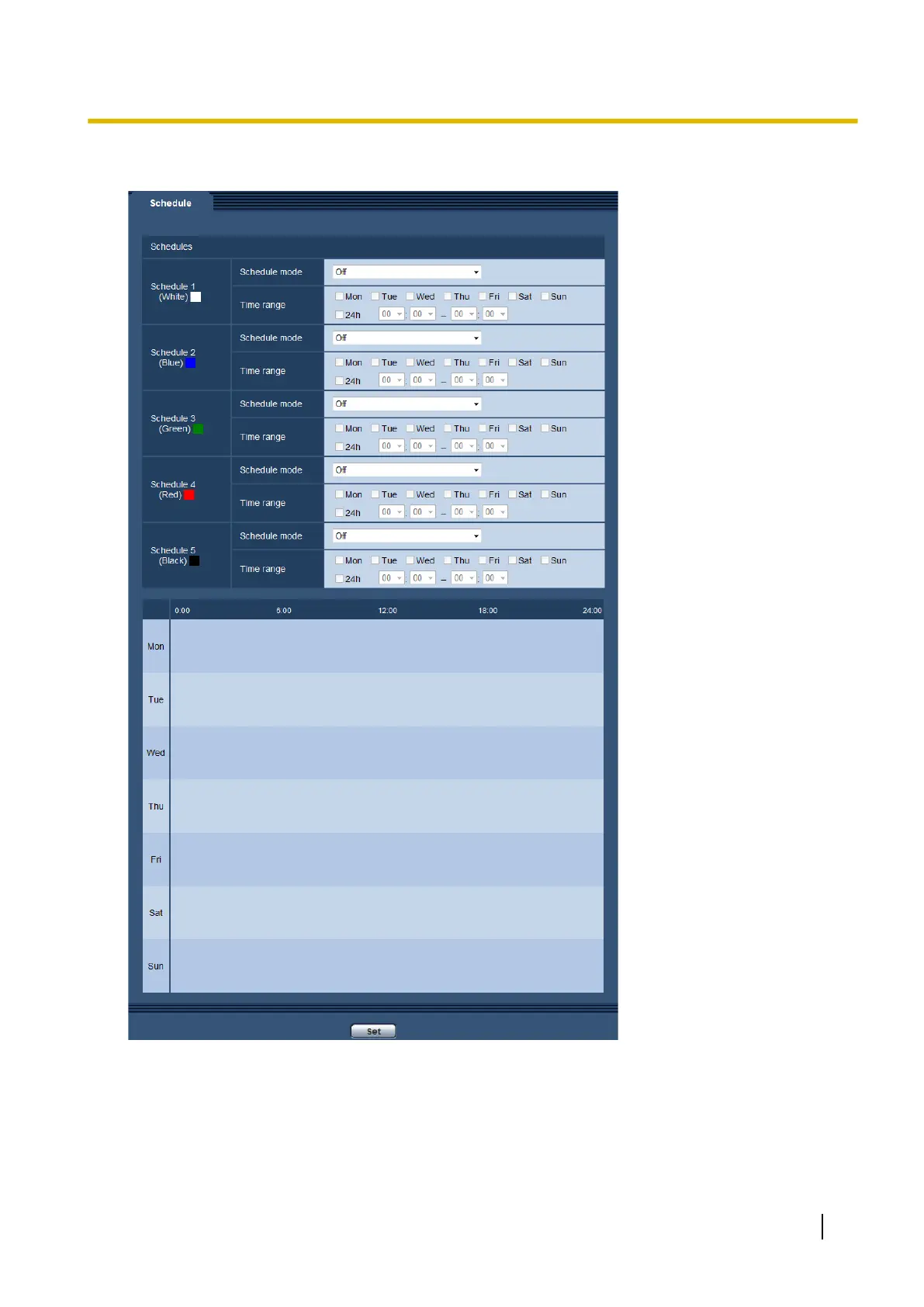 • Off: No action will be taken for the respective schedule.