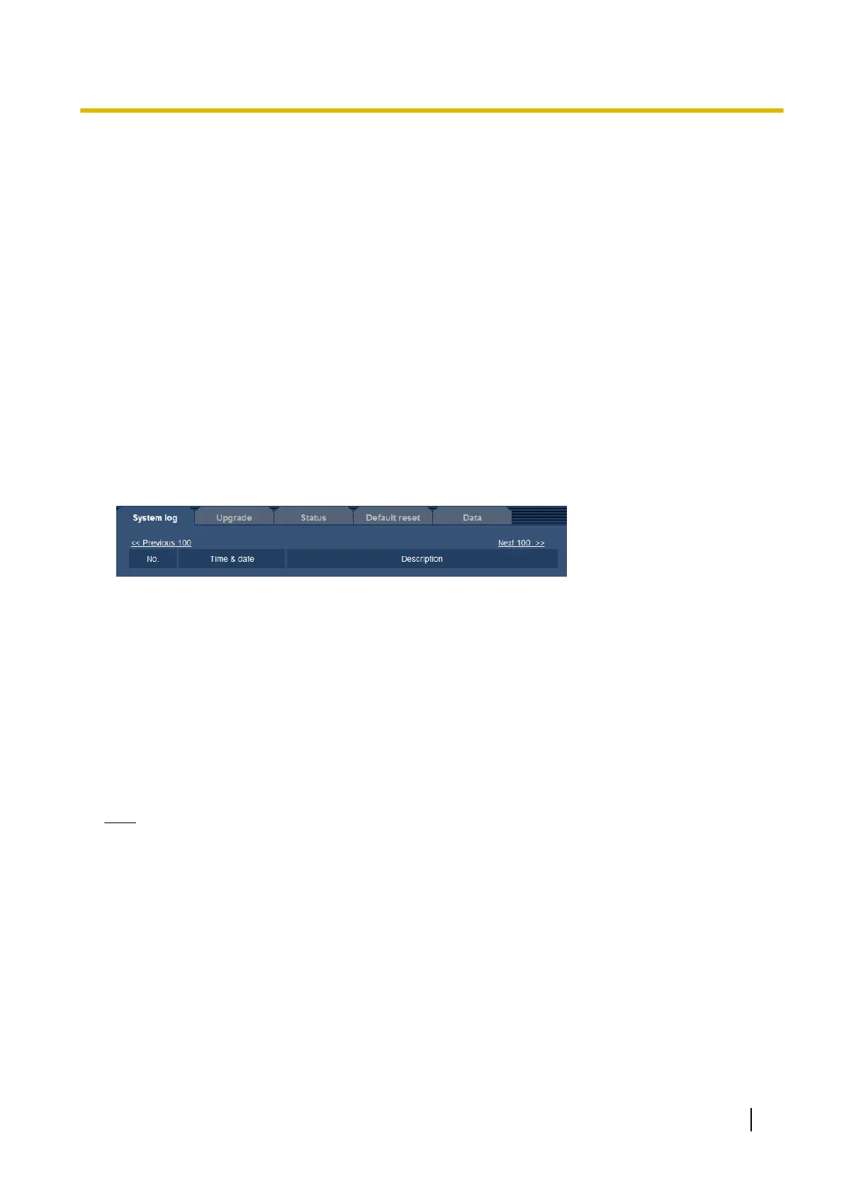When clicking “<< Previous 100”, the previous 100 system logs will be displayed.
