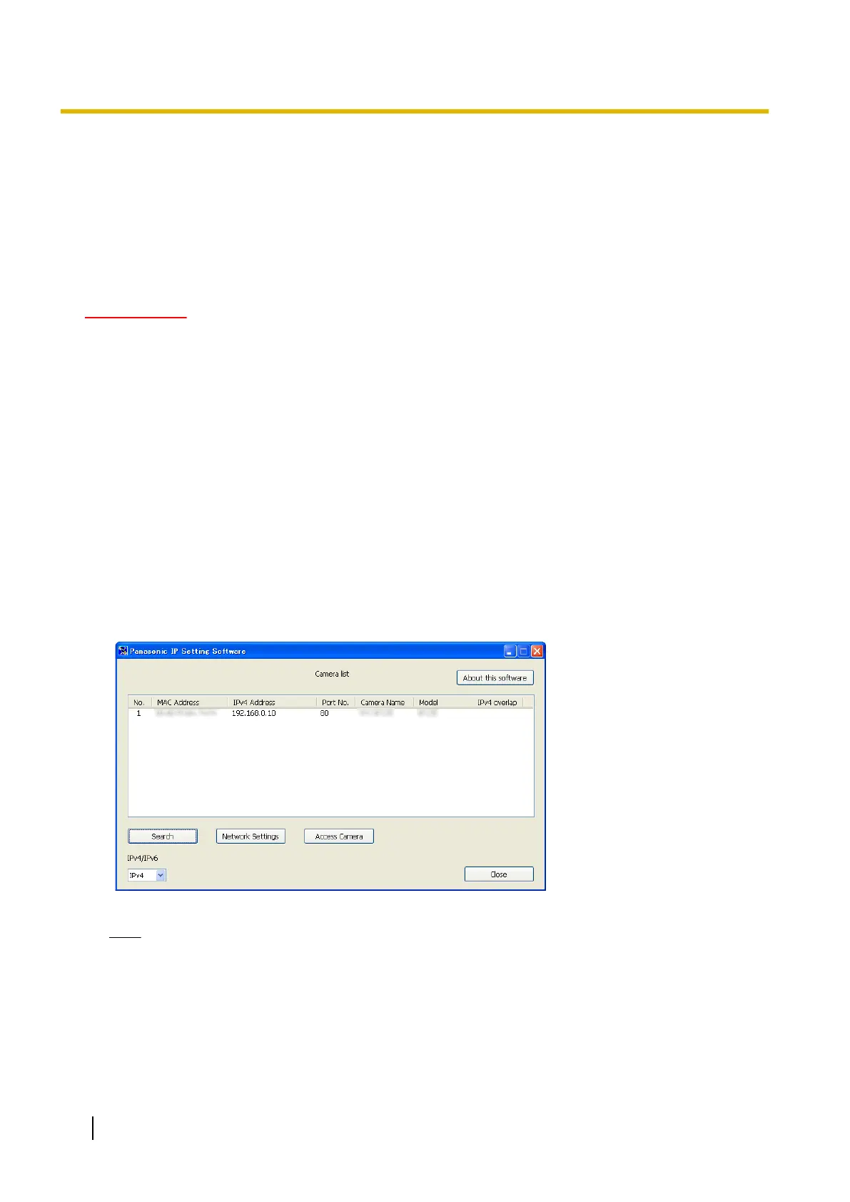 • This camera cannot be displayed or set with an older version of the “IP Setting Software” (version 2.xx).