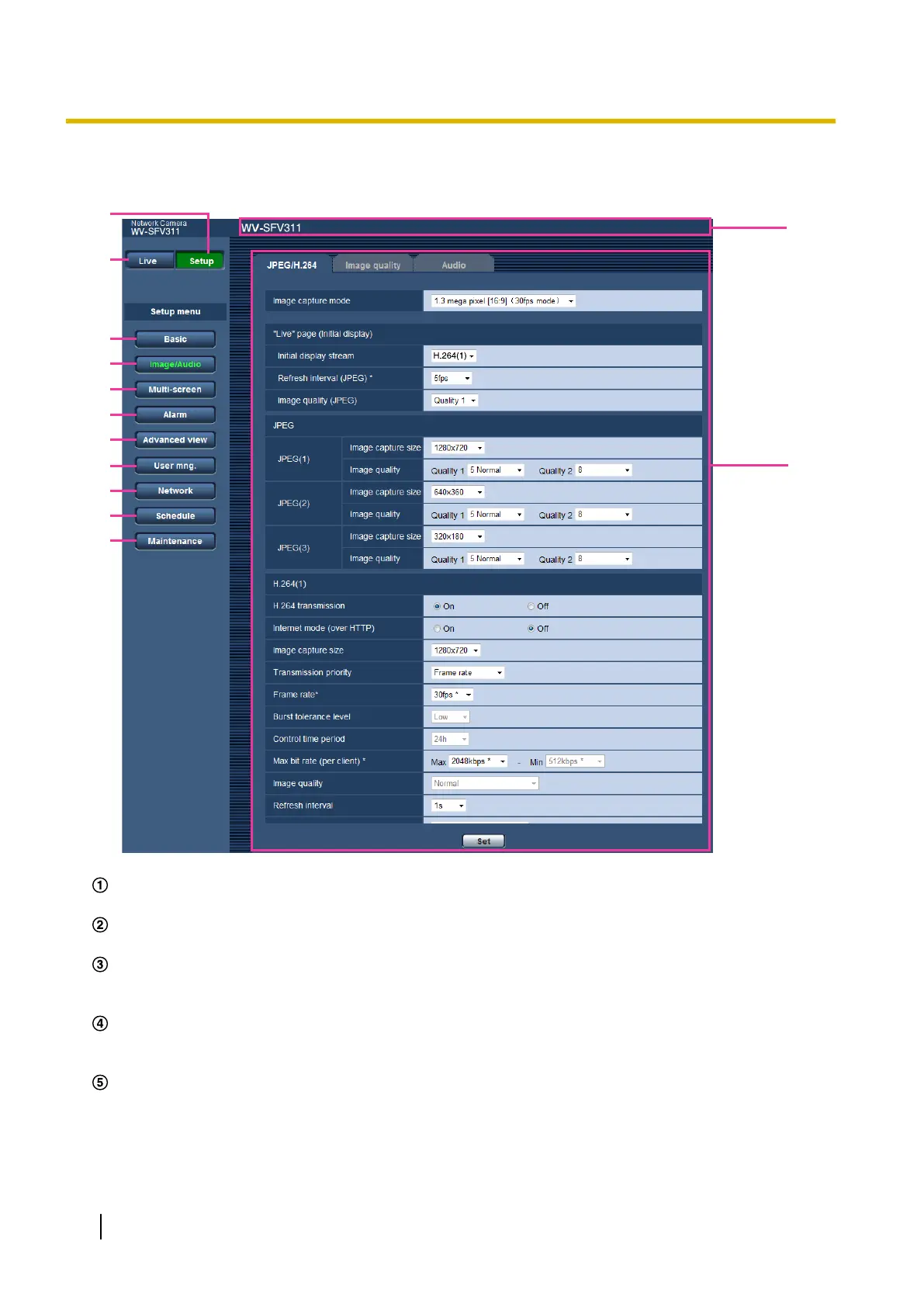 H.264 camera images can be configured on the “Image/Audio” page. (®page 76)