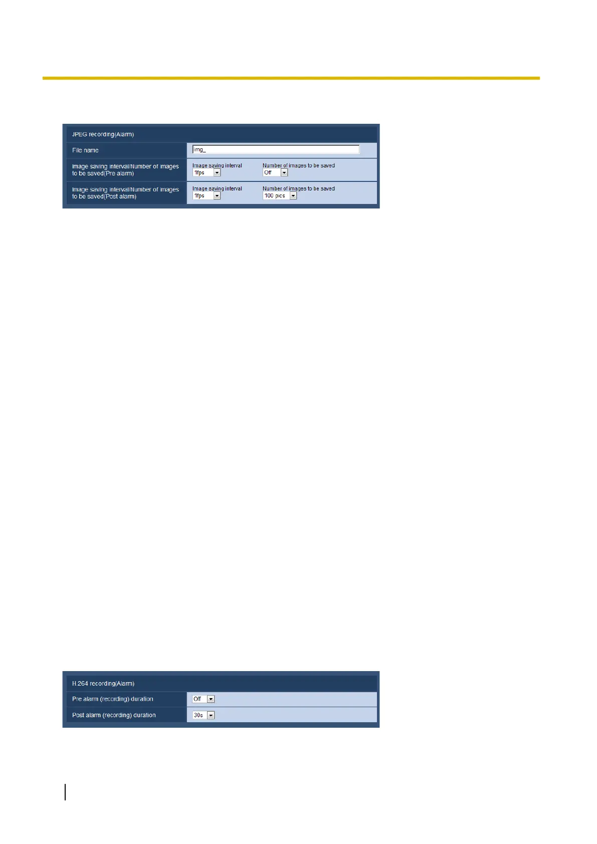When “Alarm input” is selected for “Save trigger”, select a pre alarm interval (frame rate) of saving images on